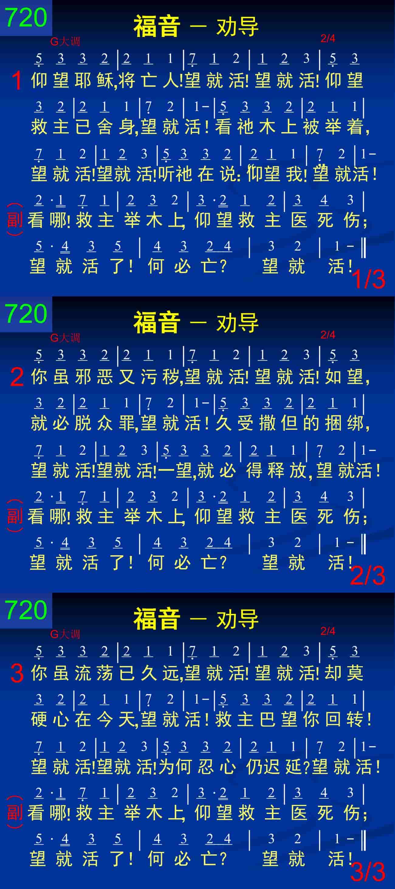 你虽流荡已久远,望就活!望就活!却莫硬心在今天,望就活!救主巴望你回转!望就活!望就活!为何忍心仍迟延?望就活!