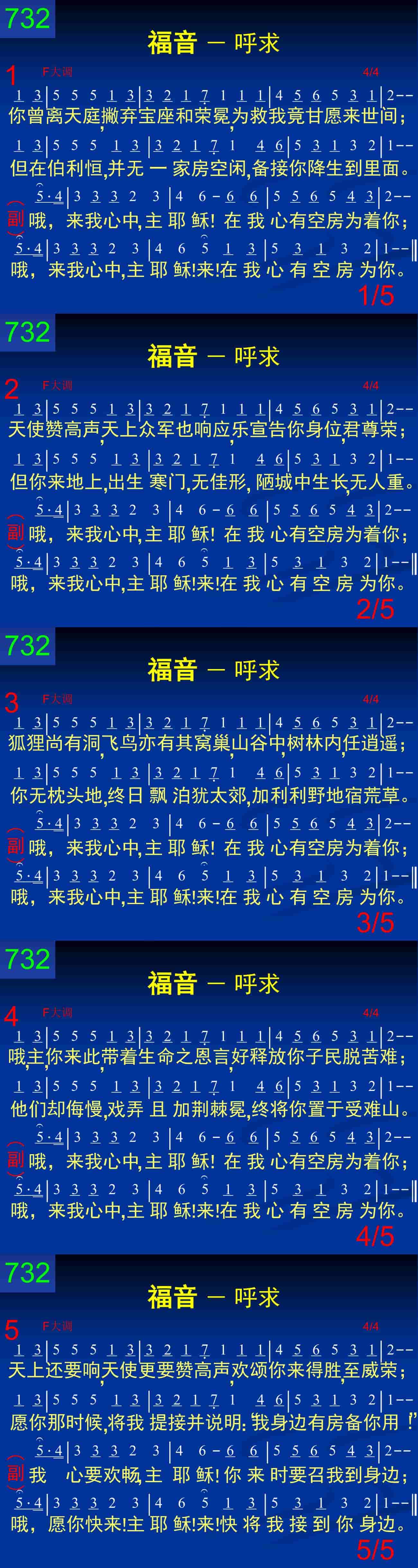 哦,来我心中,主耶稣!在我心有空房为着你;哦,来我心中,主耶稣!来!在我心有空房为你。