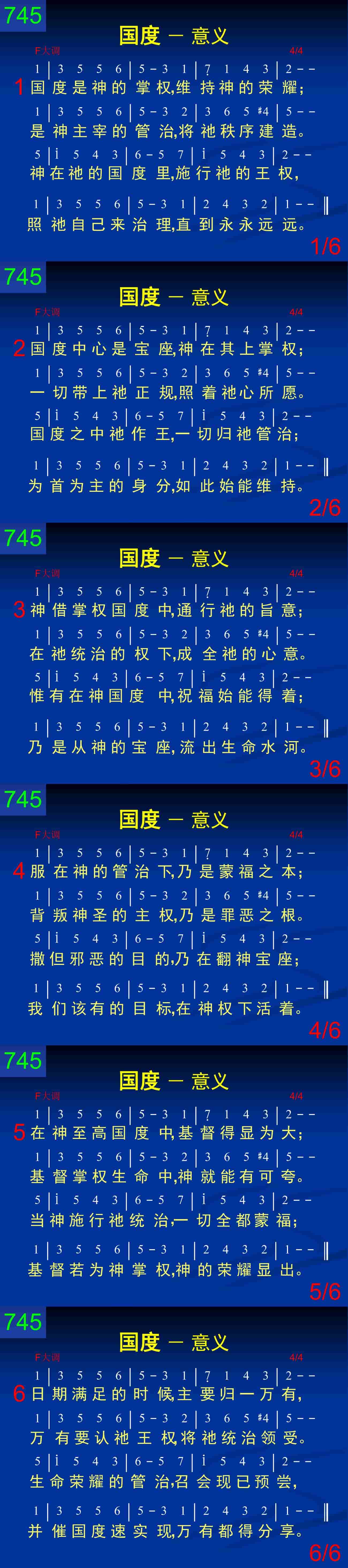 神借掌权国度中,通行祂的旨意;在祂统治的权下,成全祂的心意。唯有在神国度中,祝福始能得着;乃是从神的宝座,流出生命水河。