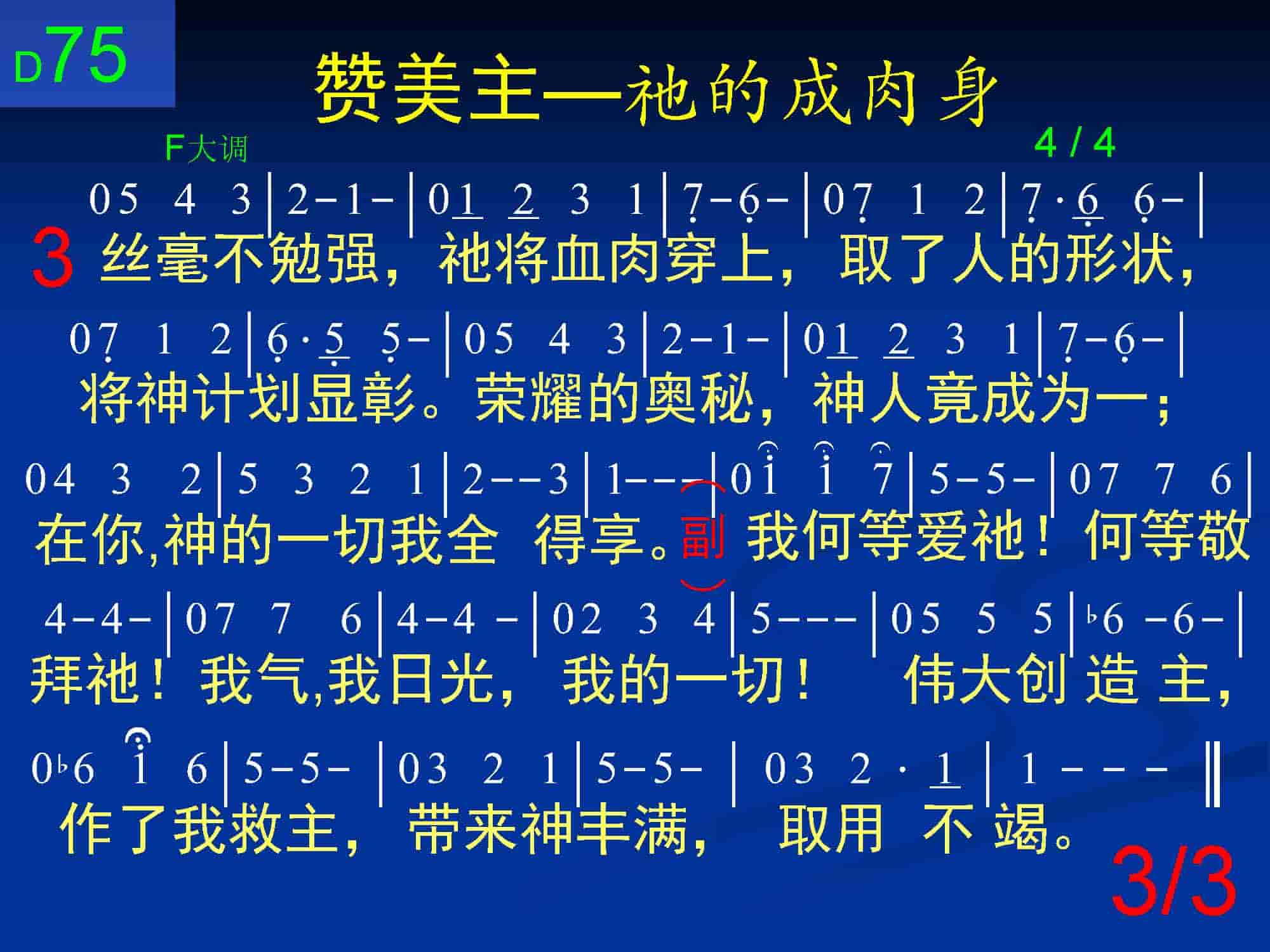 丝毫不勉强,祂将血肉穿上,取了人的形状,将神计划显彰。荣耀的奥秘,神人竟成为一;在你,神的一切我全得享。