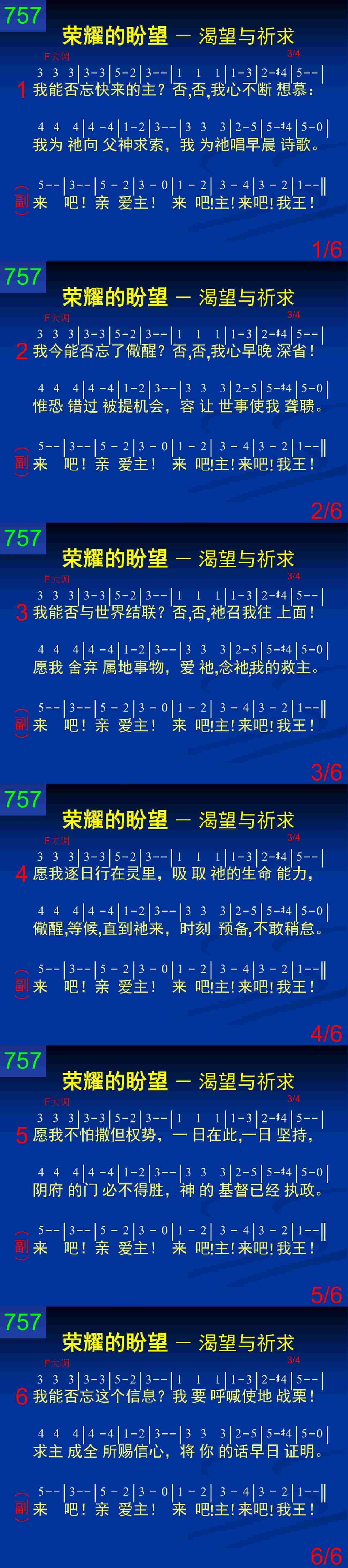 我能否忘快来的主?否,否,我心不断想慕:我为祂向父神求索,我为祂唱早晨诗歌。