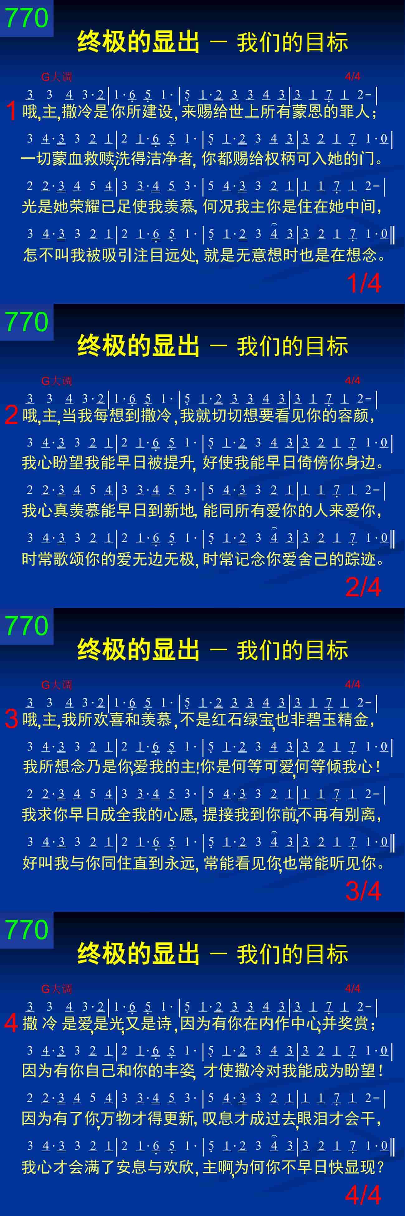 哦,主,当我每想到撒冷,我就切切想要看见你的容颜,我心盼望我能早日被提升,好使我能早日倚傍你身边。我心真羡慕能早日到新地,能同所有爱你的人来爱你,时常歌颂你的爱无边无极,时常记念你爱舍己的踪迹。