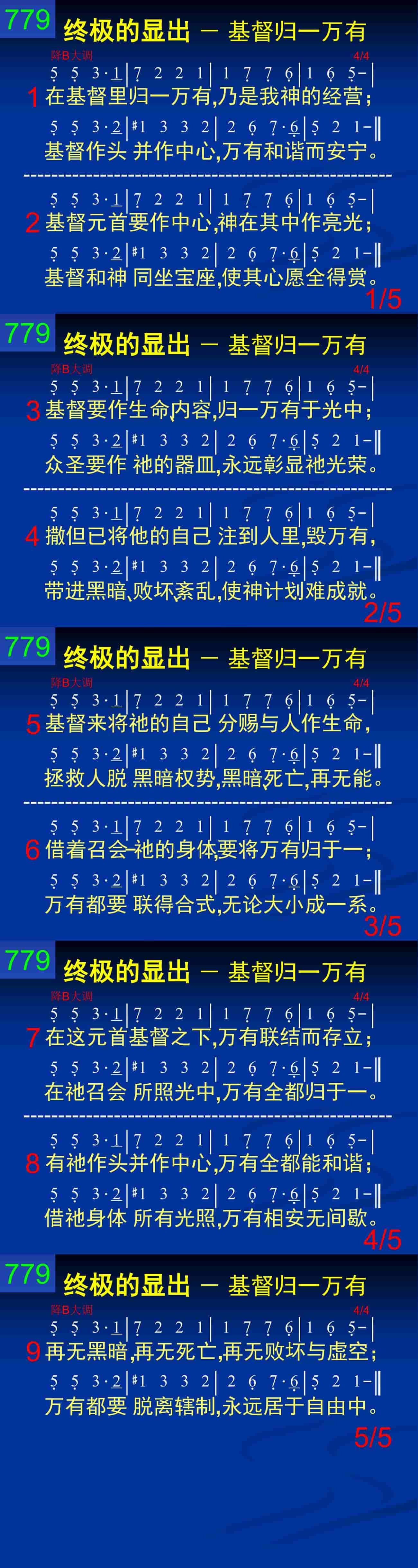 在基督里归一万有,乃是我神的经营;基督作头并作中心,万有和谐而安宁。