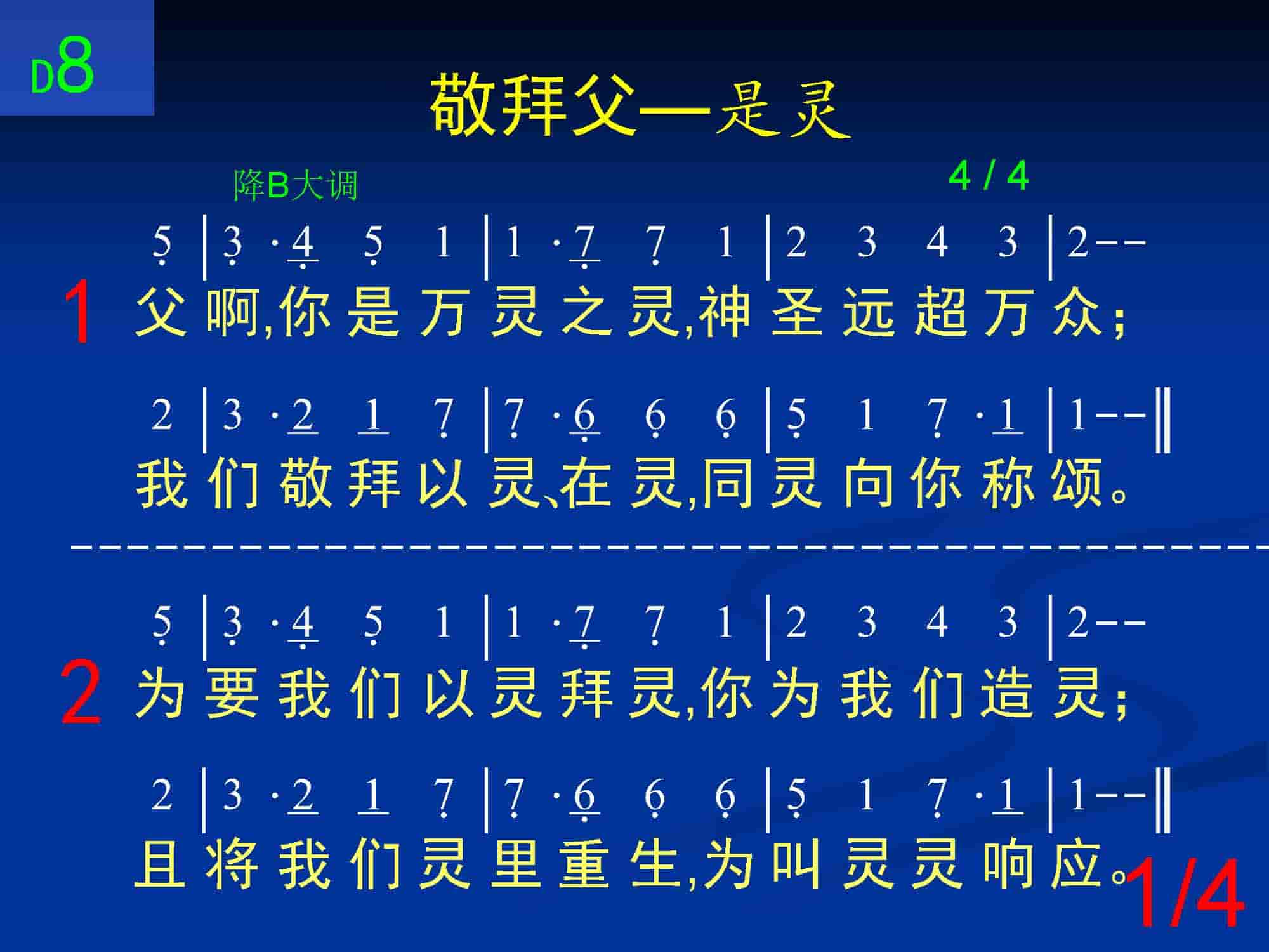 父啊,你是万灵之灵,神圣远超万众;我们敬拜以灵、在灵,同灵向你称颂。