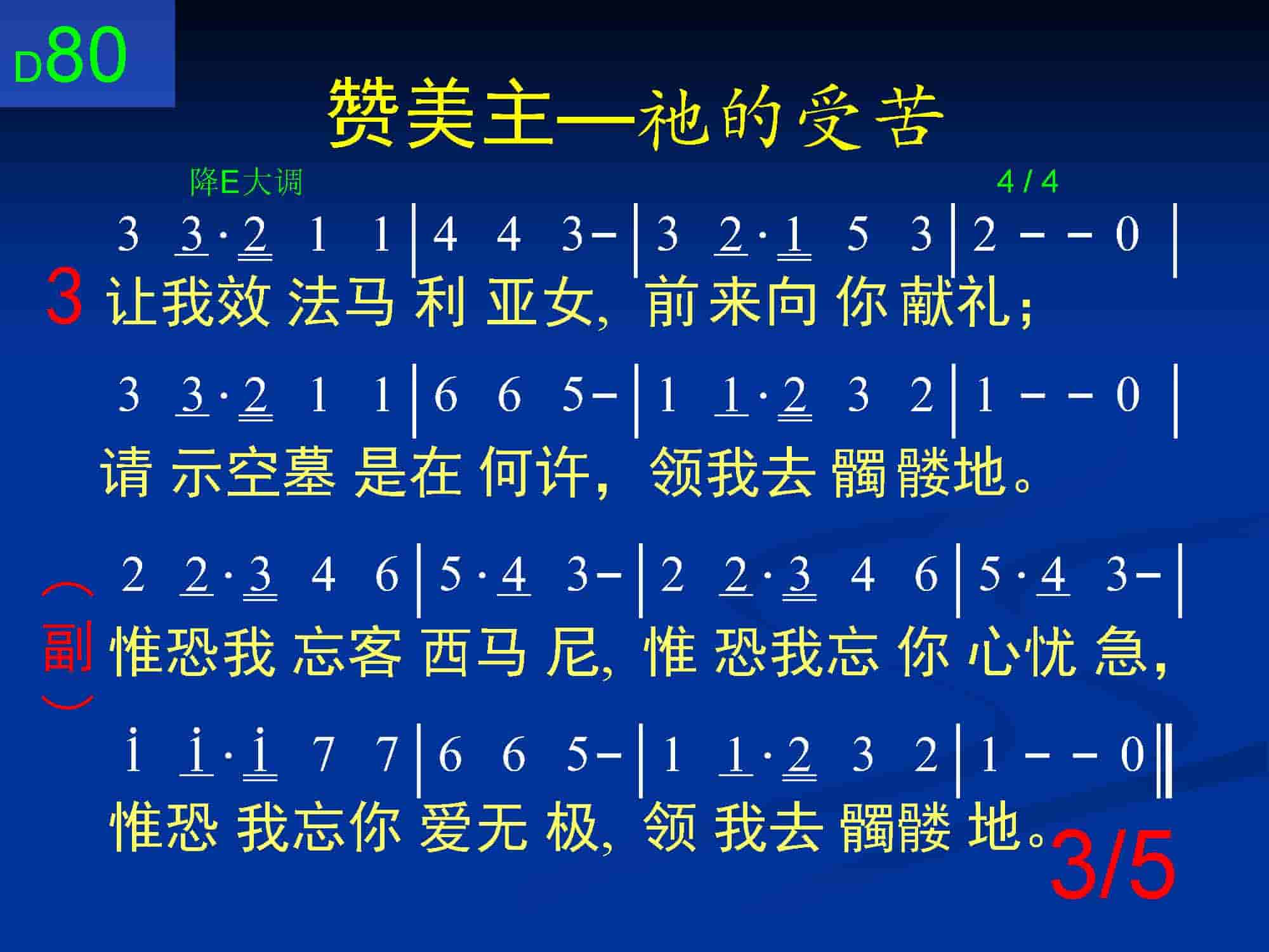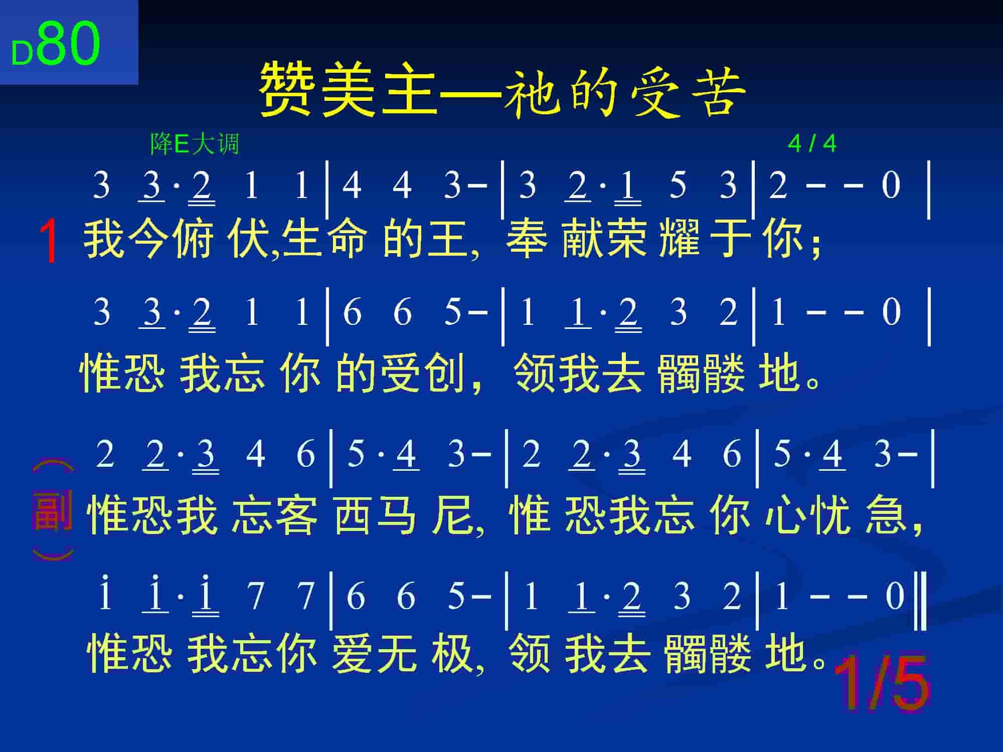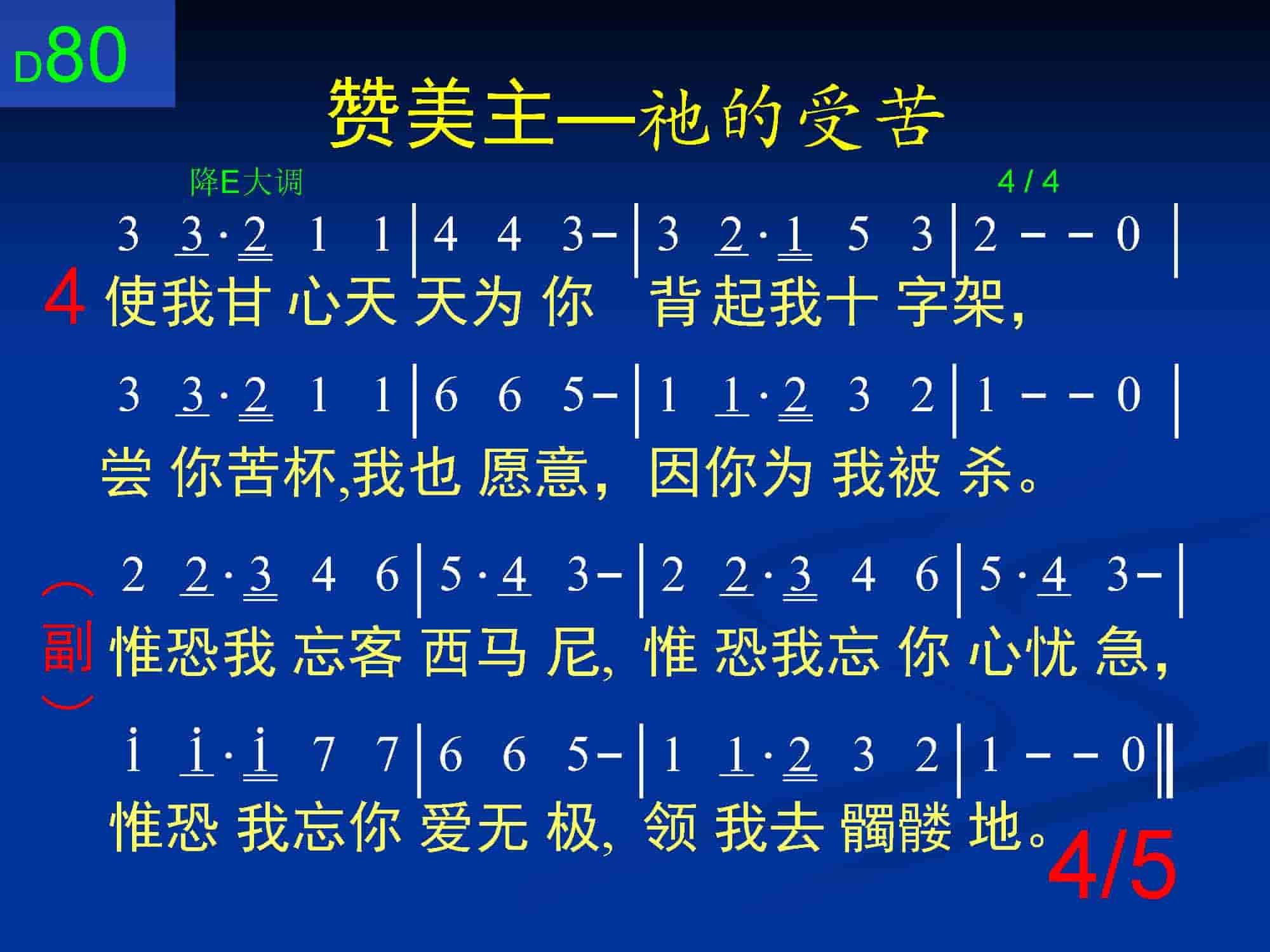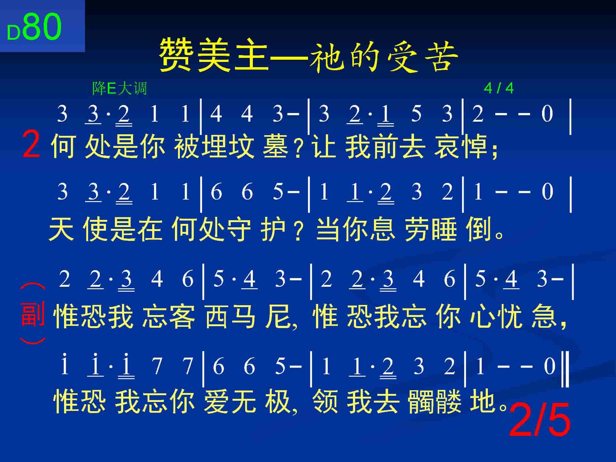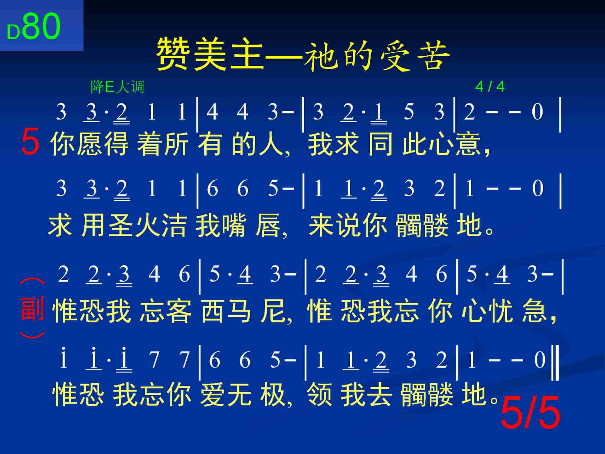 唯恐我忘客西马尼,唯恐我忘你心忧急,唯恐我忘你爱无极,领我去髑髅地。