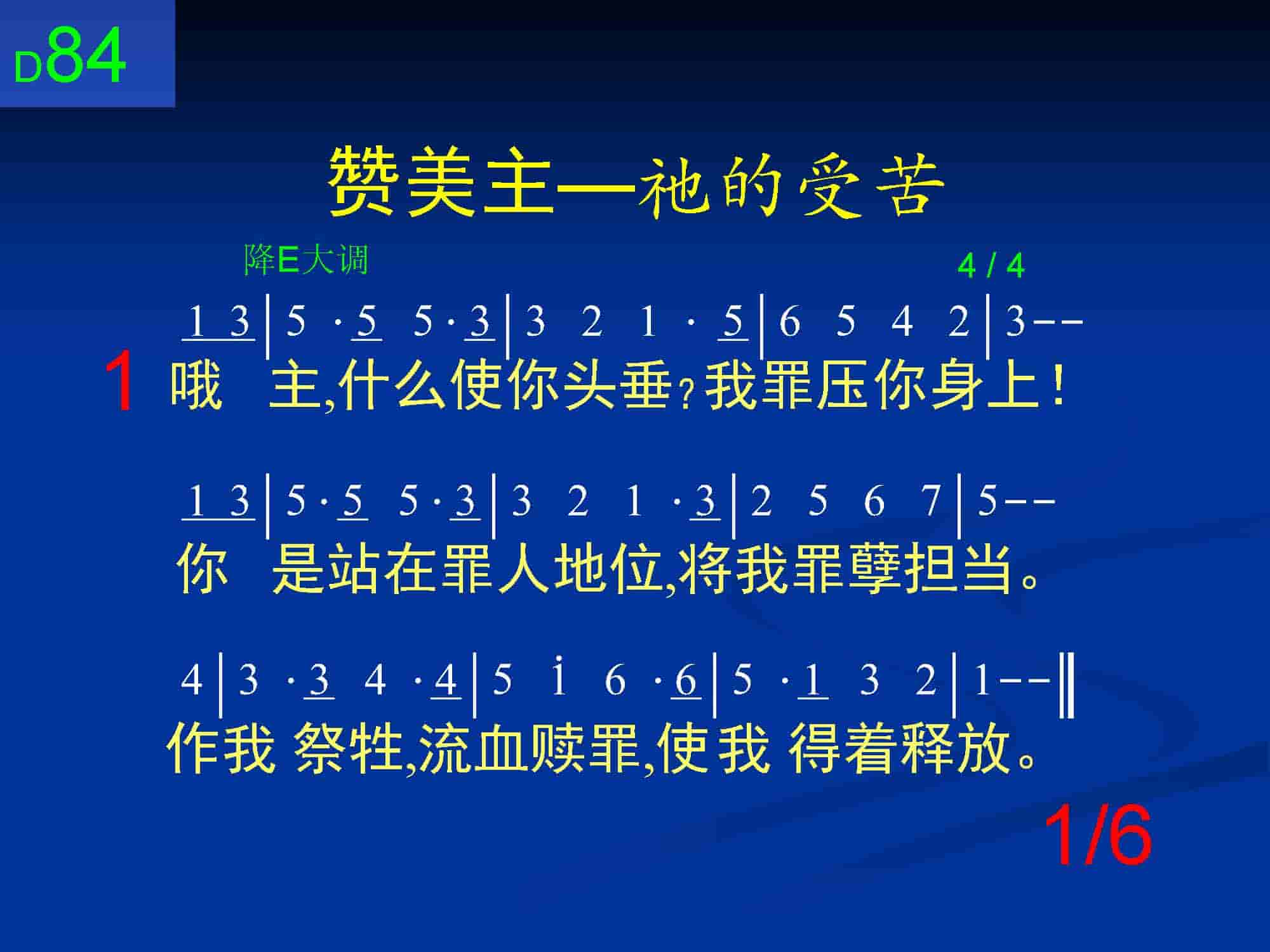 哦主,什么使你头垂?我罪压你身上!你是站在罪人地位,将我罪孽担当。作我祭牲,流血赎罪,使我得着释放。