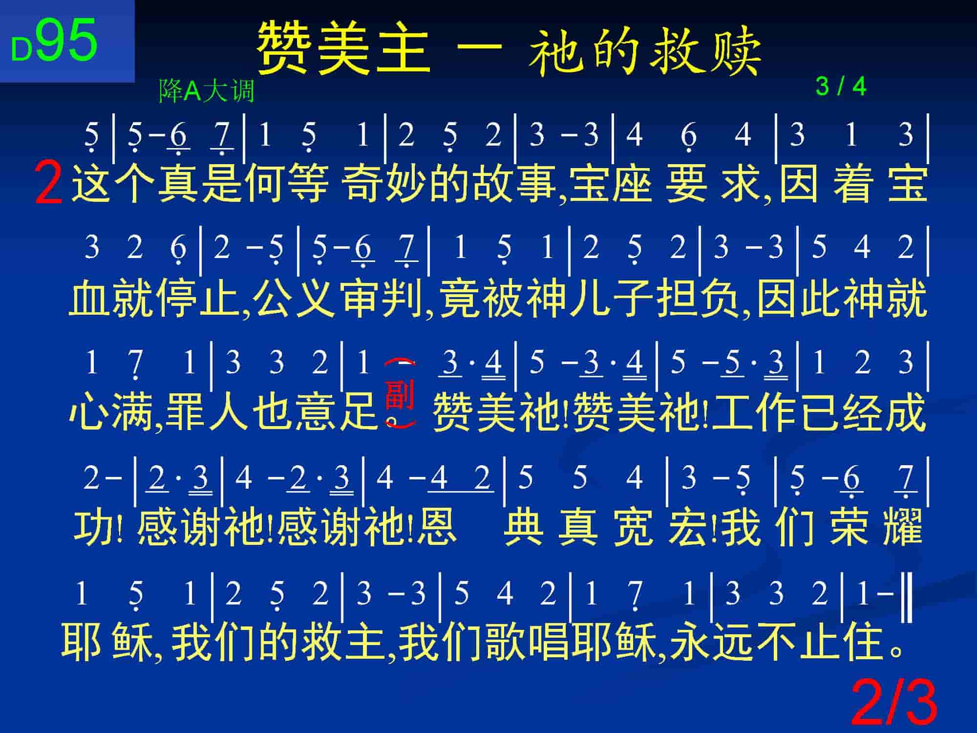 赞美祂!赞美祂!工作已经成功!感谢祂!感谢祂!恩典真宽宏!我们荣耀耶稣,我们的救主,我们歌唱耶稣,永远不止住。