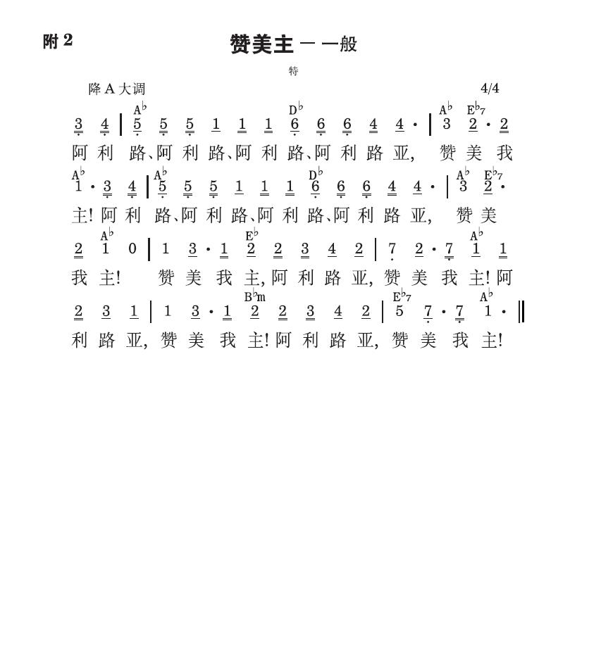 阿利路、阿利路、阿利路、阿利路亚,赞美我主!阿利路、阿利路、阿利路、阿利路亚,赞美我主!赞美我主,阿利路亚,赞美我主!阿利路亚,赞美我主!阿利路亚,赞美我主!