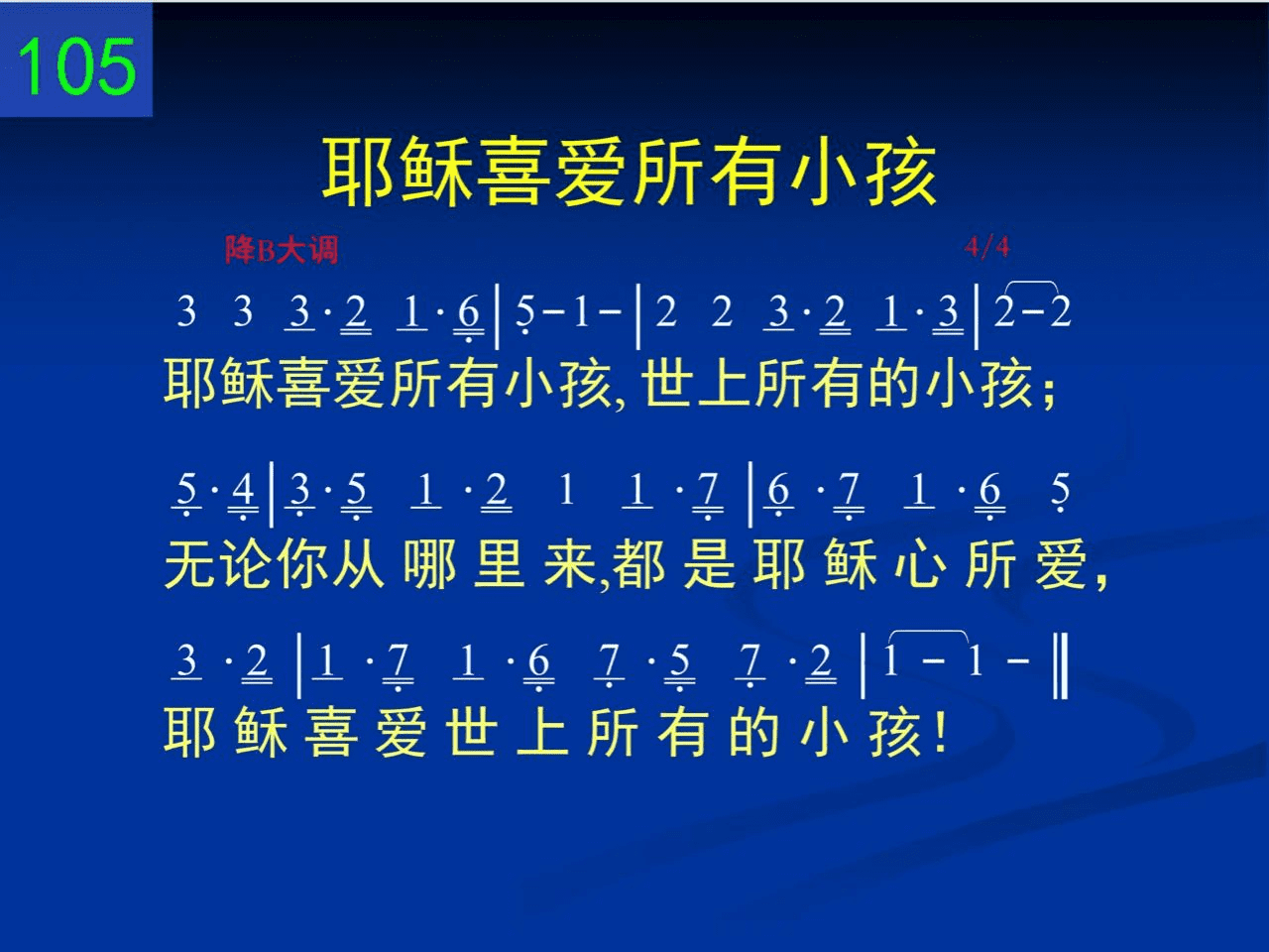耶稣喜爱所有小孩,世上所有的小孩;无论你从哪里来,都是耶稣心所爱,耶稣喜爱世上所有的小孩!