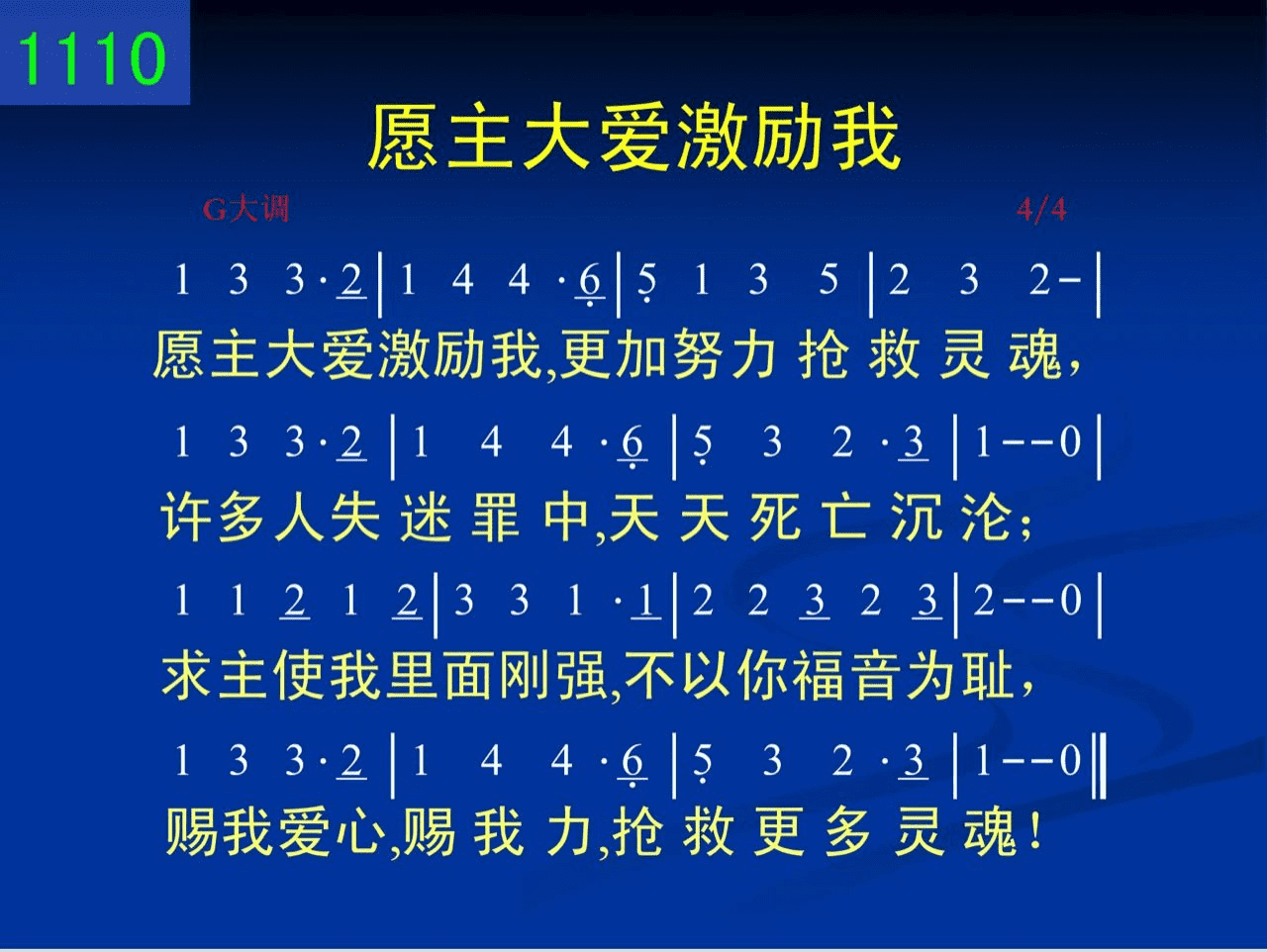 愿主大爱激励我,更加努力抢救灵魂,许多人失迷罪中,天天死亡沉沦;求主使我里面刚强,不以你福音为耻,赐我爱心,赐我力,抢救更多灵魂!