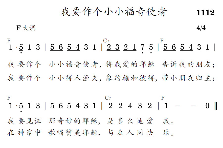 我要作个小小得人渔夫,像约翰和彼得,带小朋友归主;在神家中歌唱赞美耶稣,与众人同快乐。