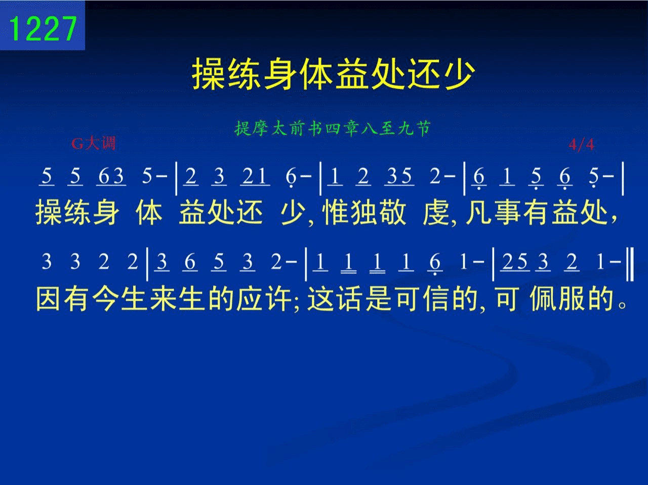 操练身体益处还少,唯独敬虔,凡事有益处,因有今生来生的应许;这话是可信的,可佩服的。