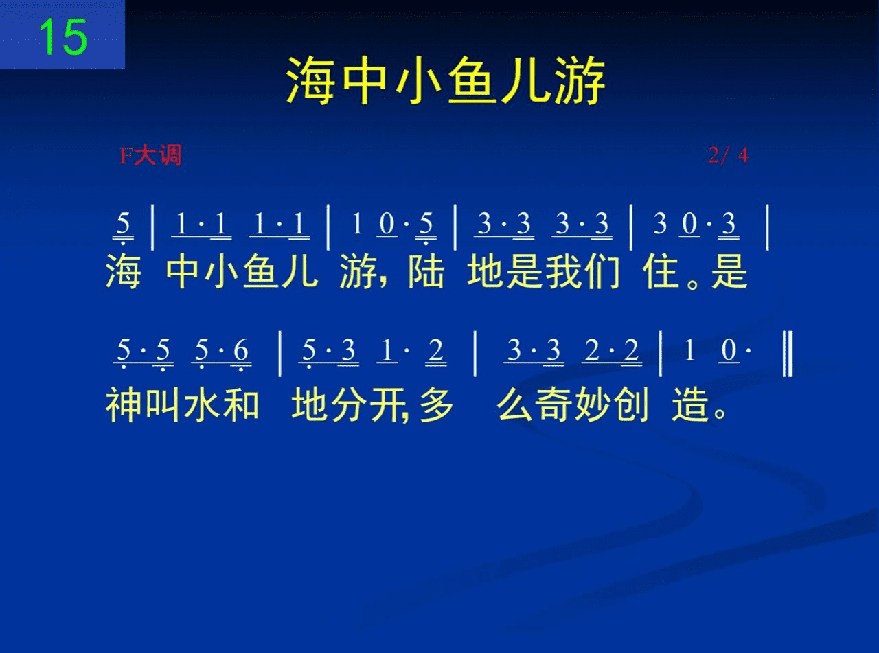 海中小鱼儿游,陆地是我们住。是神叫水和地分开,多么奇妙创造。