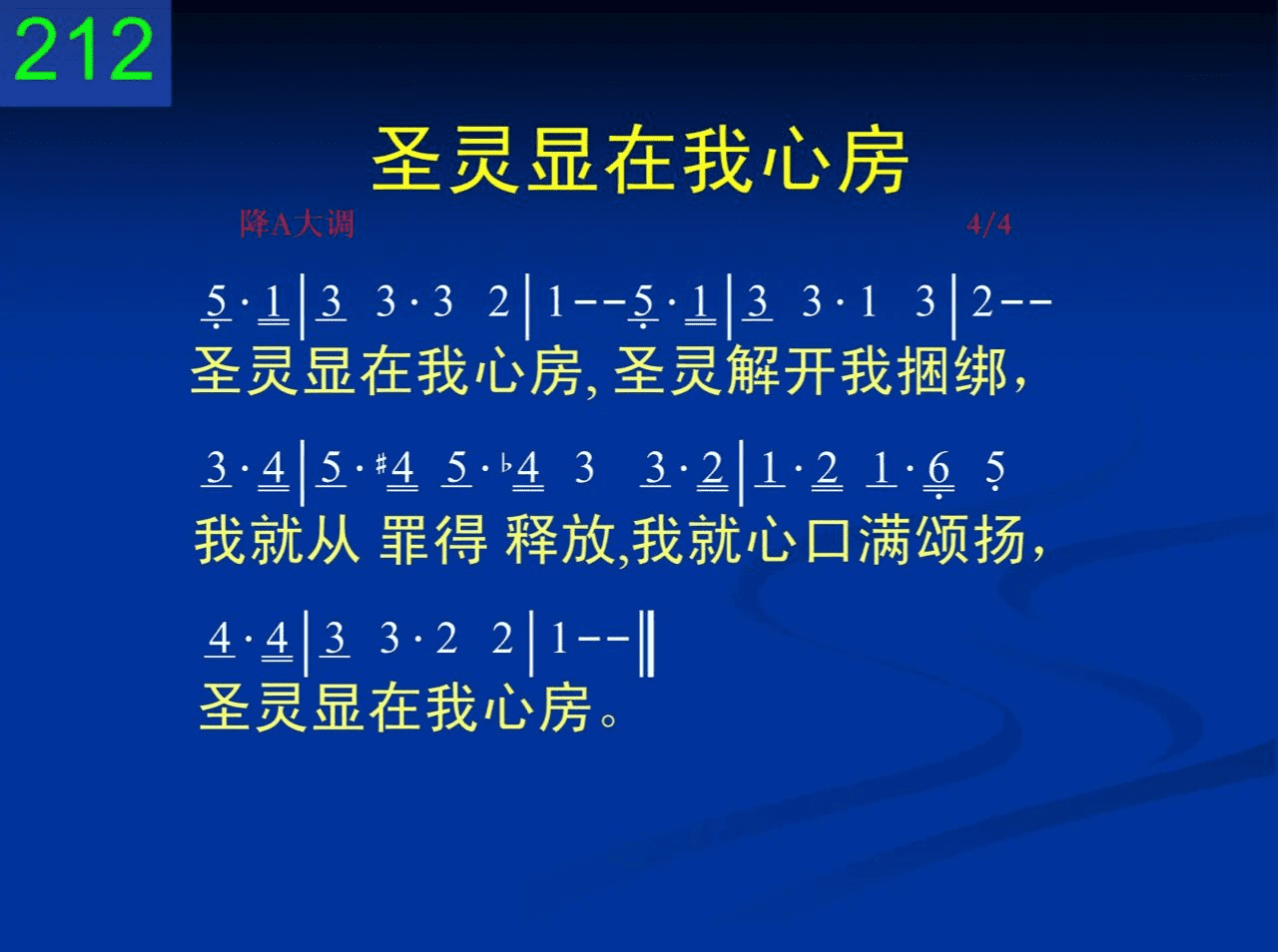 圣灵显在我心房,圣灵解开我捆绑,我就从罪得释放,我就心口满颂扬,圣灵显在我心房。