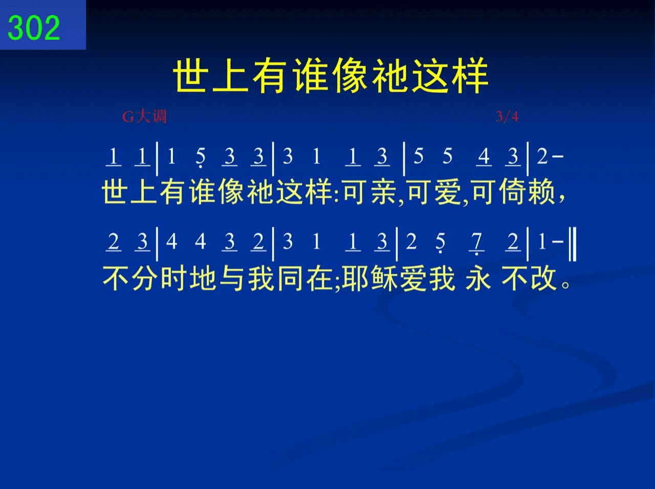 世上有谁像祂这样:可亲,可爱,可倚赖,不分时地与我同在;耶稣爱我永不改。