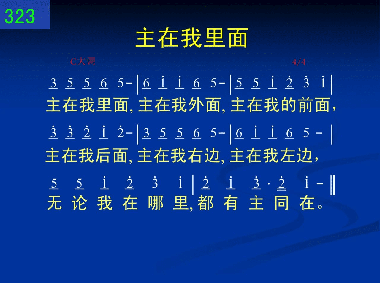 主在我里面,主在我外面,主在我的前面,主在我后面,主在我右边,主在我左边,无论我在哪里,都有主同在。