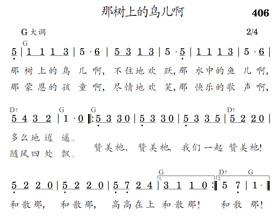 赞美祂,赞美祂,我们一起赞美祂!和散那,和散那,高高在上和散那!赞美祂,赞美祂,我们一起赞美祂!和散那,和散那,高高在上和散那!