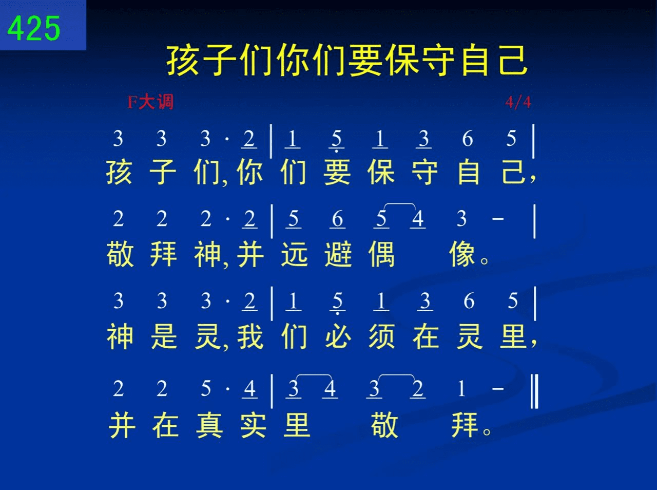 孩子们,你们要保守自己,敬拜神,并远避偶像。神是灵,我们必须在灵里,并在真实里敬拜。