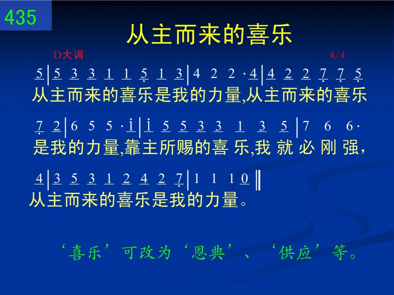 ‘喜乐’可改为‘恩典’、‘供应’等。