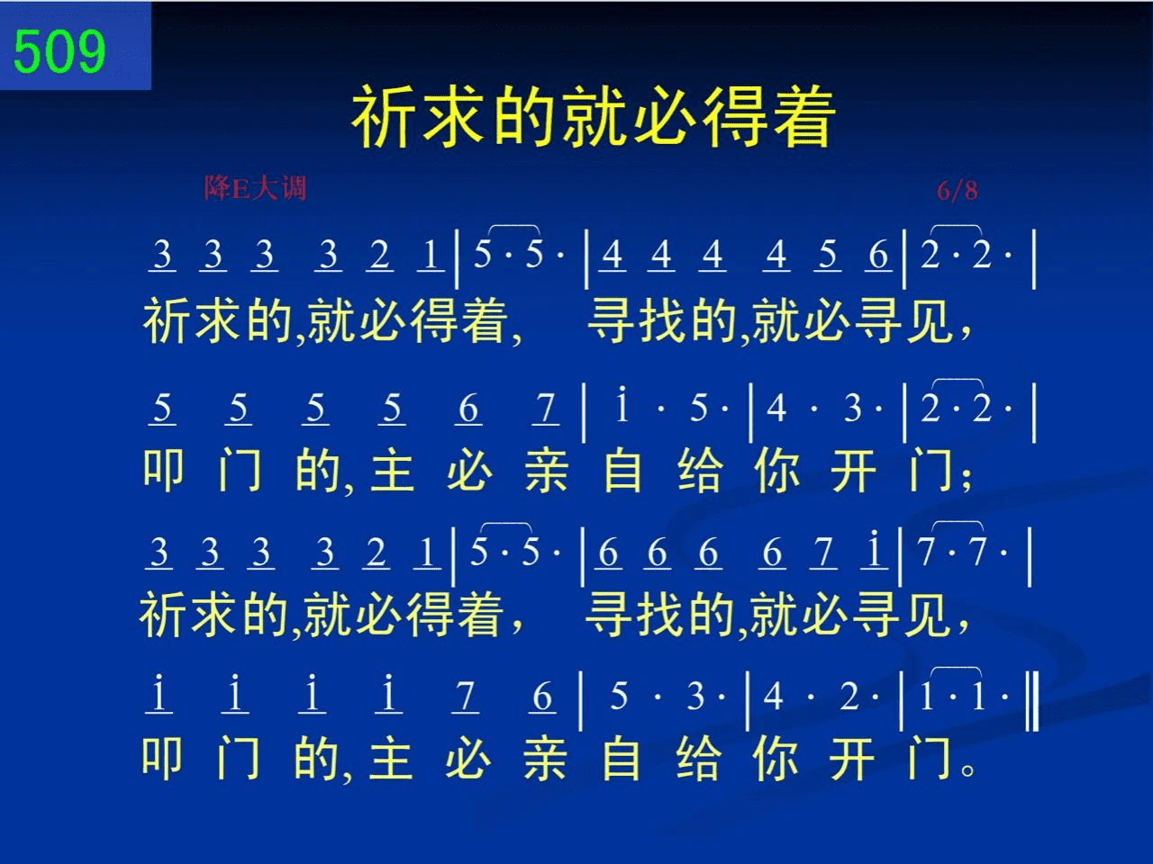 祈求的,就必得着,寻找的,就必寻见,叩门的,主必亲自给你开门;祈求的,就必得着,寻找的,就必寻见,叩门的,主必亲自给你开门。