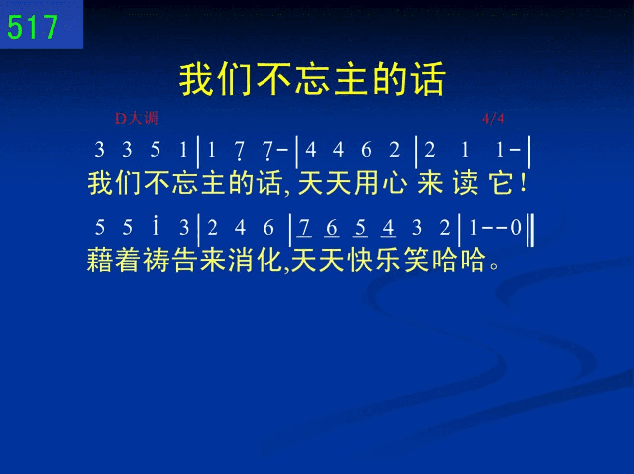 我们不忘主的话,天天用心来读它!藉着祷告来消化,天天快乐笑哈哈。