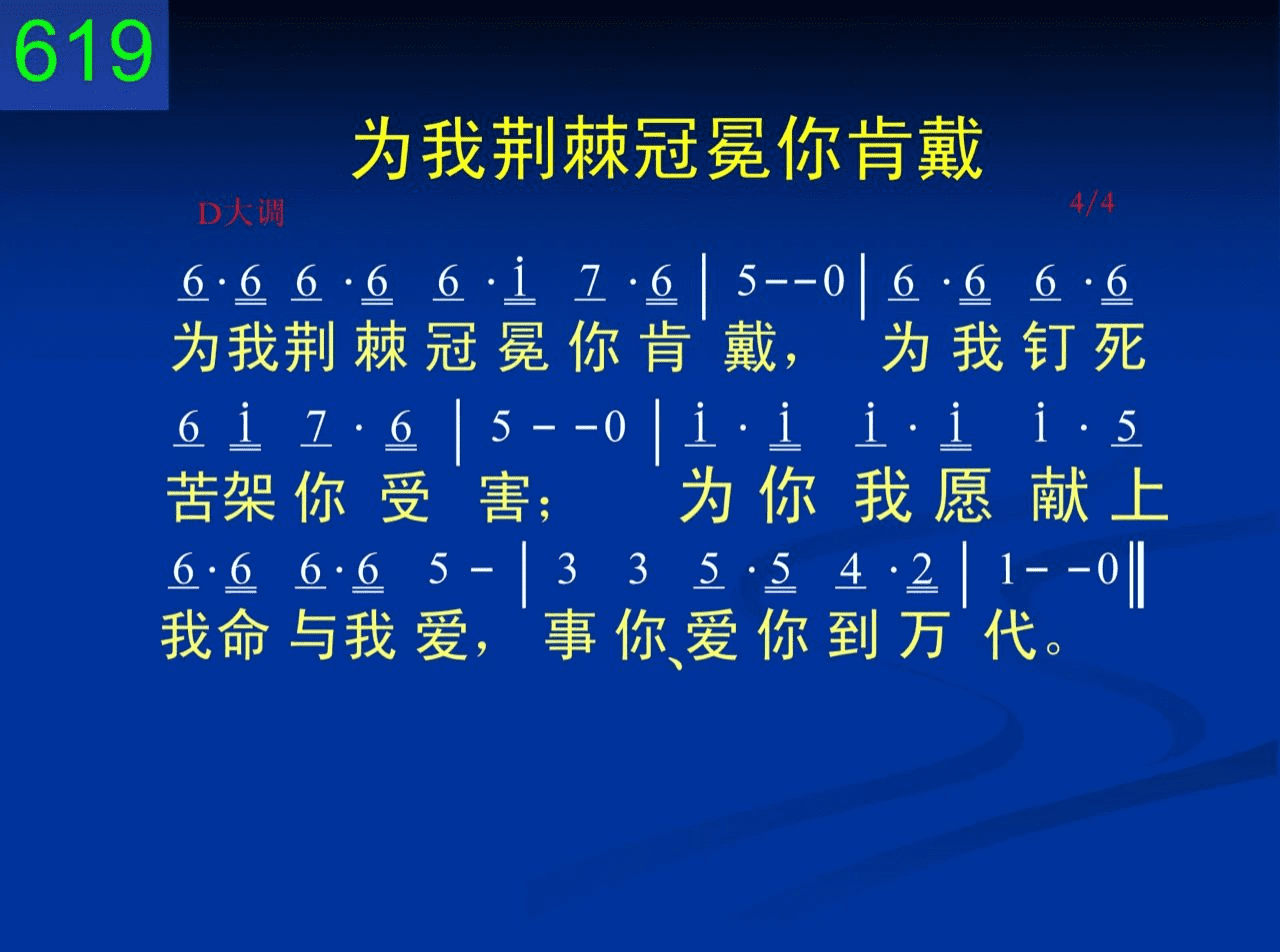为我荆棘冠冕你肯戴,为我钉死苦架你受害;为你我愿献上我命与我爱,事你爱你到万代。