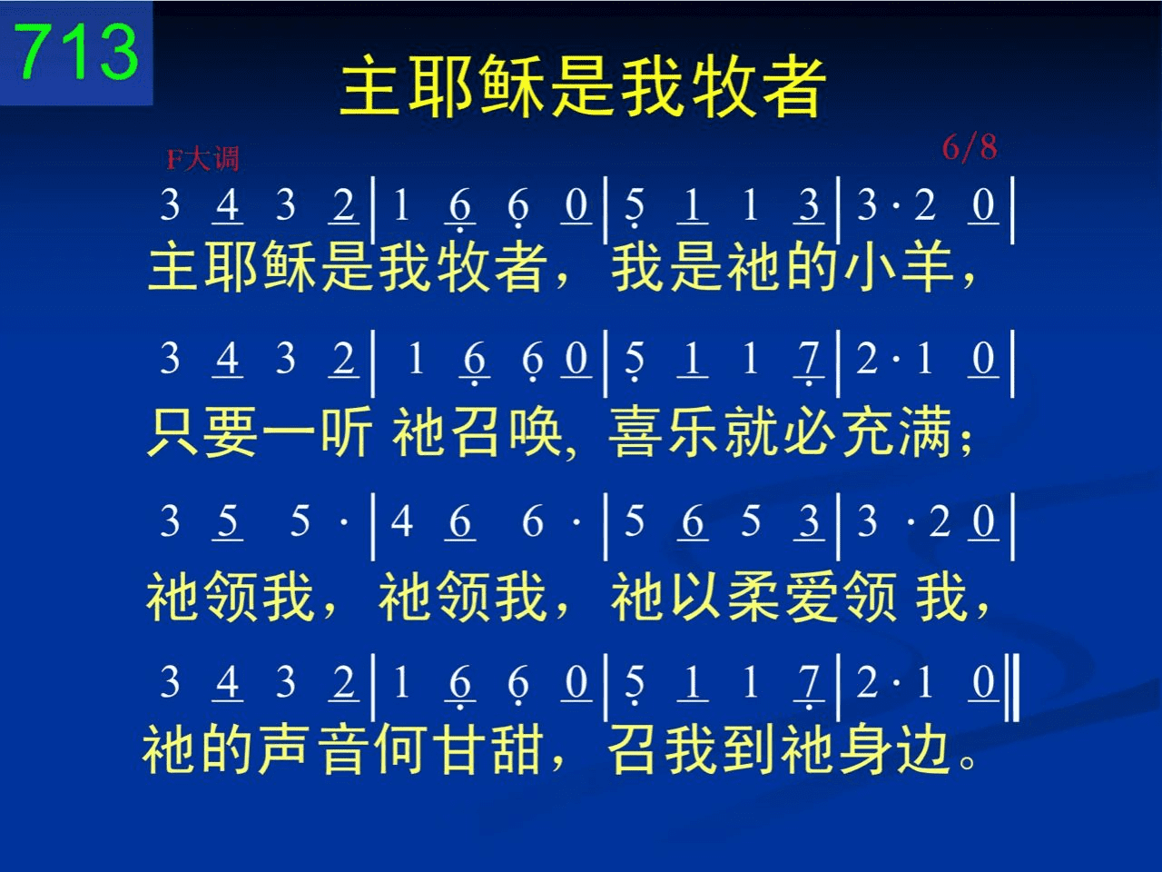 主耶稣是我牧者,我是祂的小羊,只要一听祂召唤,喜乐就必充满;祂领我,祂领我,祂以柔爱领我,祂的声音何甘甜,召我到祂身边。