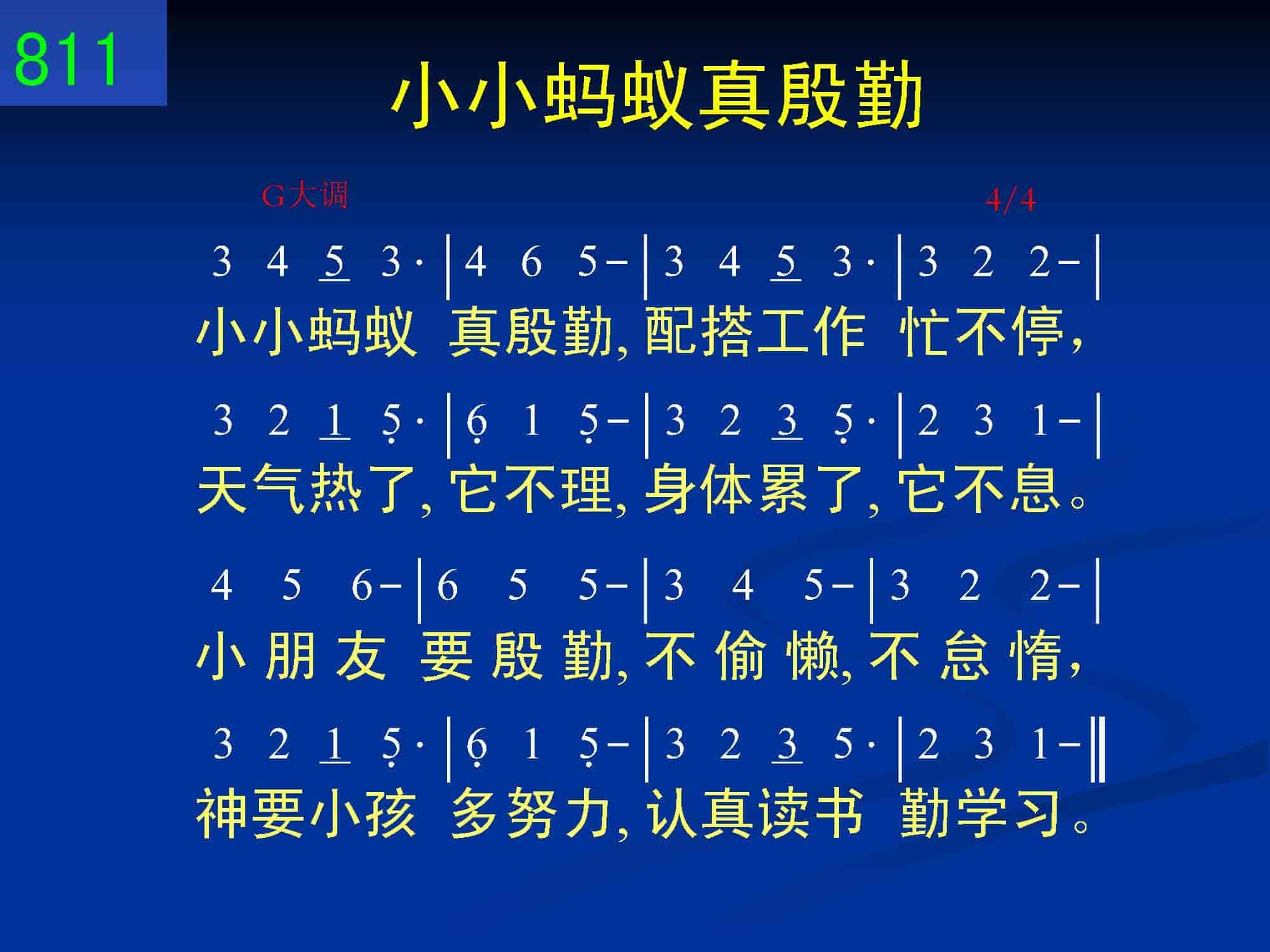 小小蚂蚁真殷勤,配搭工作忙不停,天气热了,它不理,身体累了,它不息。小朋友要殷勤,不偷懒,不怠惰,神要小孩多努力,认真读书勤学习。