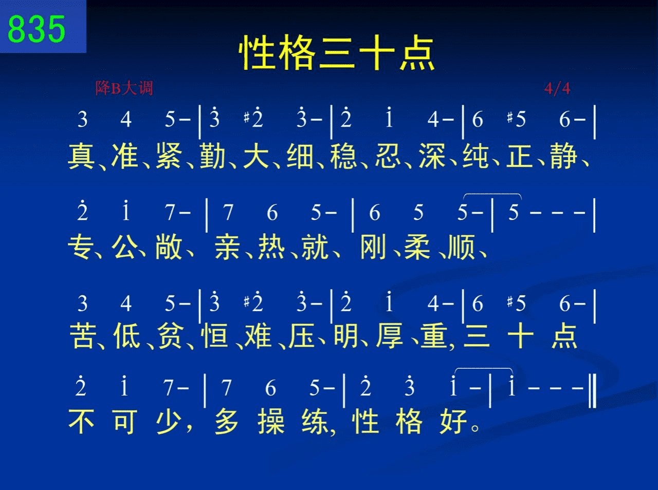 真、准、紧、勤、大、细、稳、忍、深、纯、正、静、专、公、敞、亲、热、就、刚、柔、顺、苦、低、贫、恒、难、压、明、厚、重,三十点不可少,多操练,性格好。
