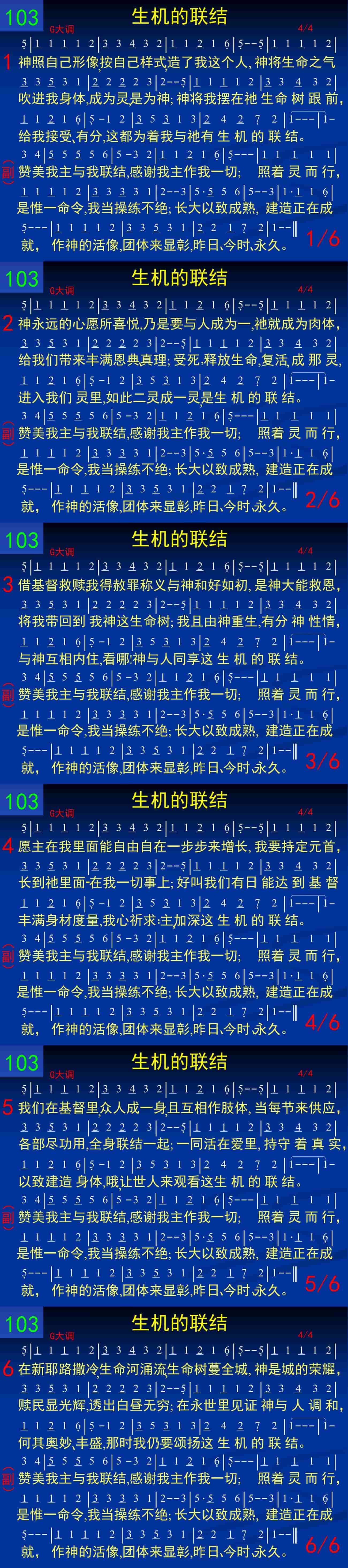赞美我主与我联结,感谢我主作我一切;照着灵而行,是惟一命令,我当操练不绝;长大以致成熟,建造正在成就,作神的活像,团体来显彰,昨日、今时、永久。