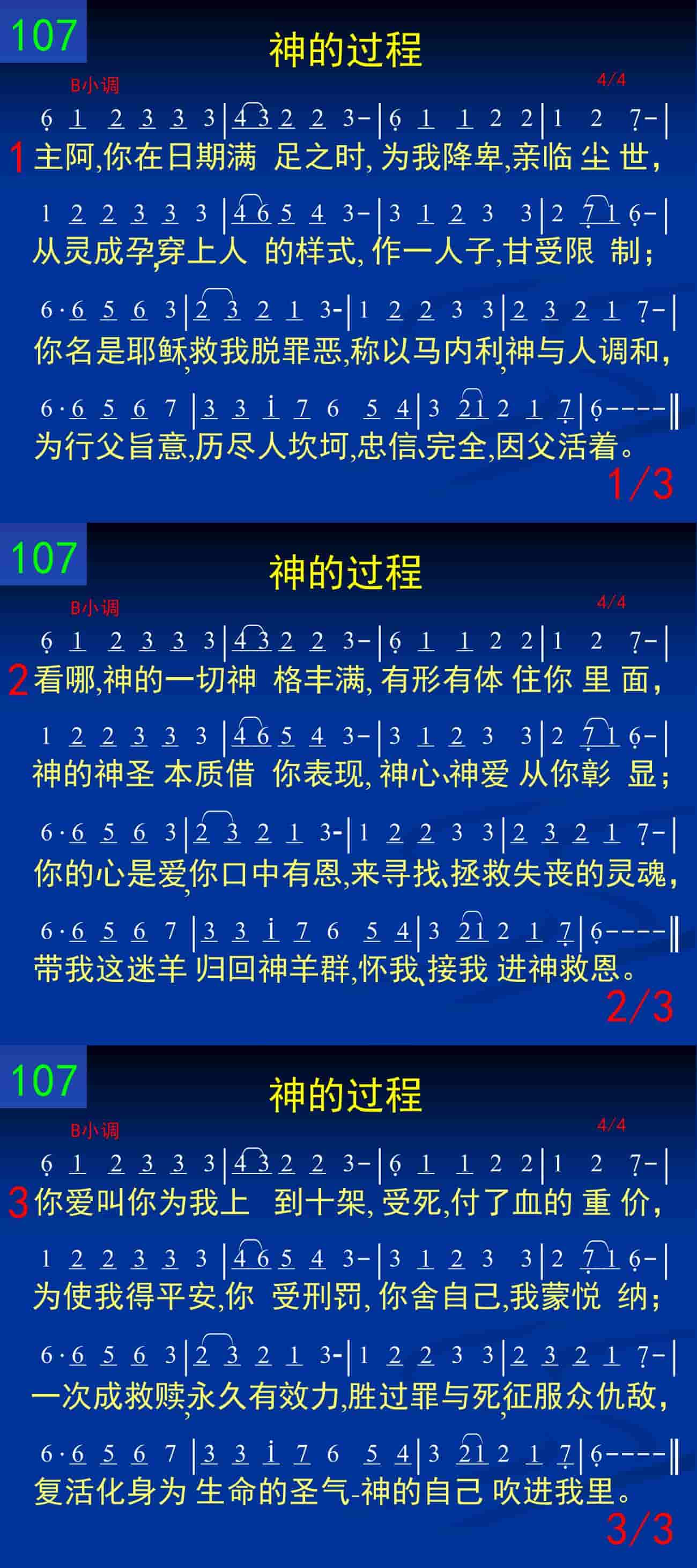 主啊,你在日期满足之时,为我降卑,亲临尘世,从灵成孕,穿上人的样式,作一人子,甘受限制;你名是耶稣,救我脱罪恶,称以马内利,神与人调和,为行你旨意,历尽人坎坷,忠信、完全,因父活着。