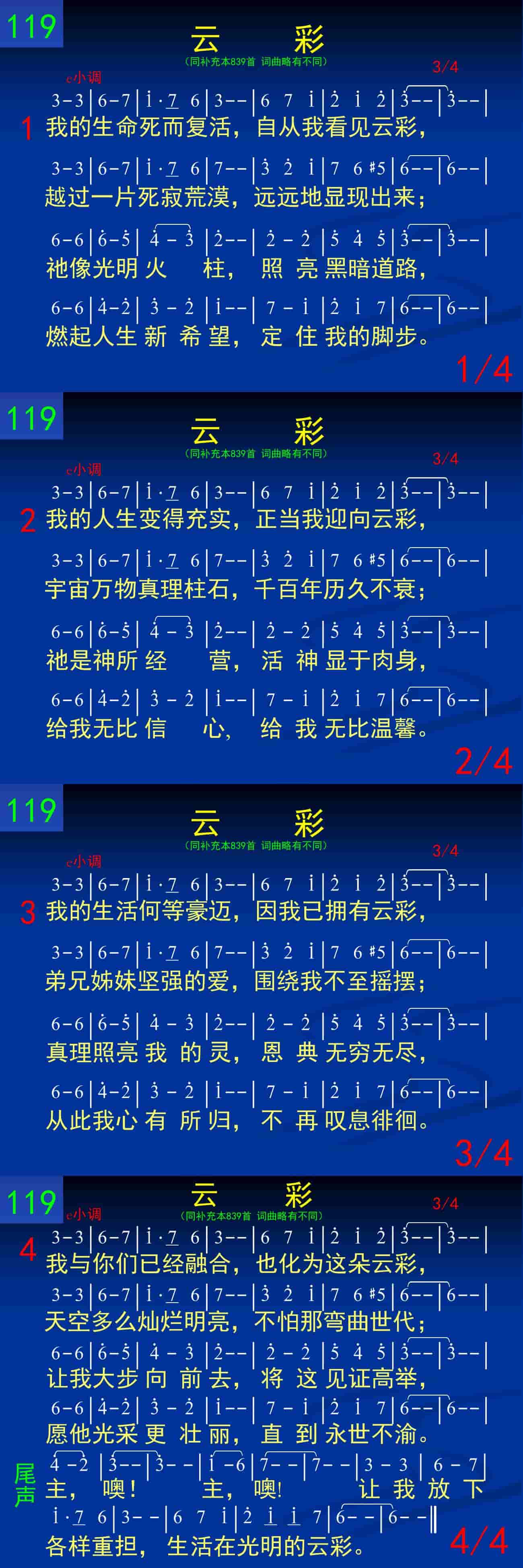 尾声:主,噢!主,噢!让我放下各样重担,生活在光明的云彩。