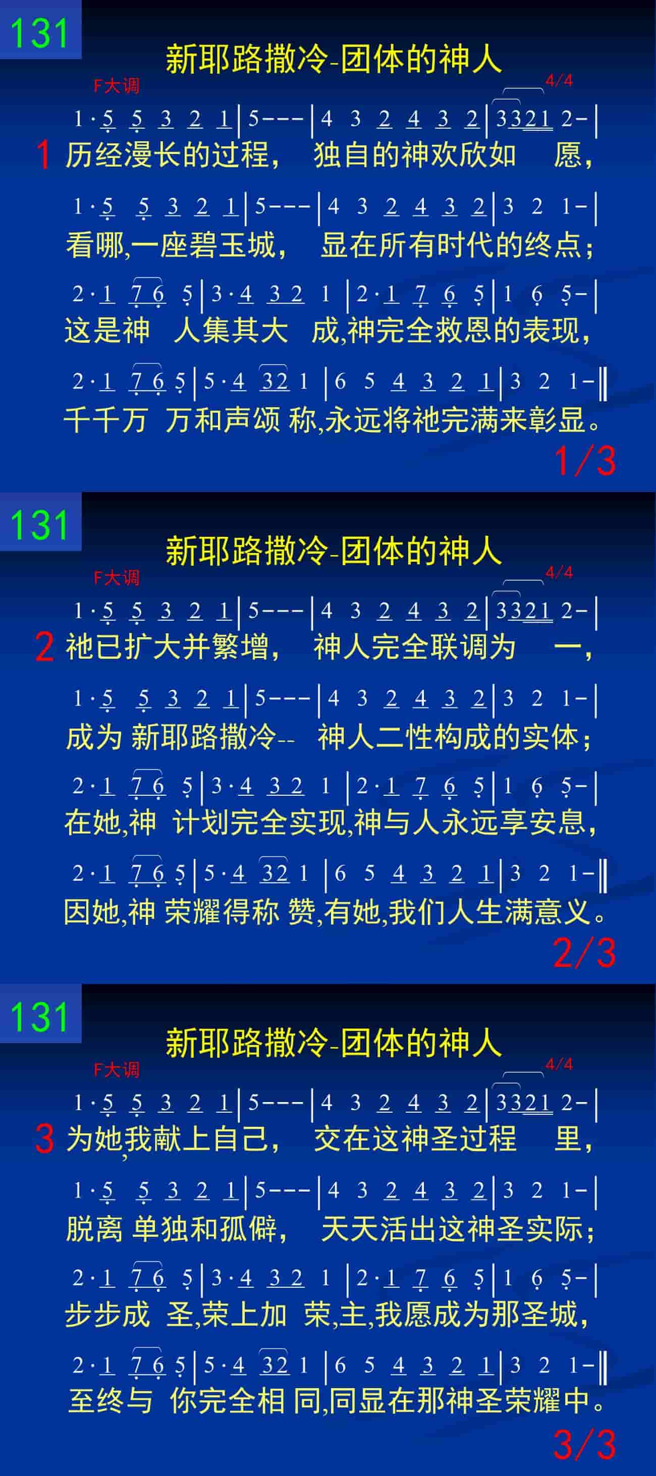 历经漫漫的过程,独自的神欢欣如愿,看哪,一座碧玉城,显在所有时代的终点;这是神人集其大成,神完全救恩的表现,千千万万和声颂称,永远将祂完满来彰显。