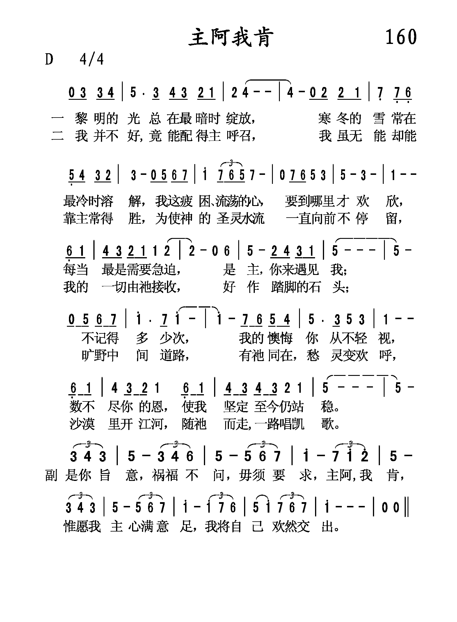 是你旨意,祸福不问,毋需要求,主啊我肯,惟愿我主心满意足,我将自己欢然交出。