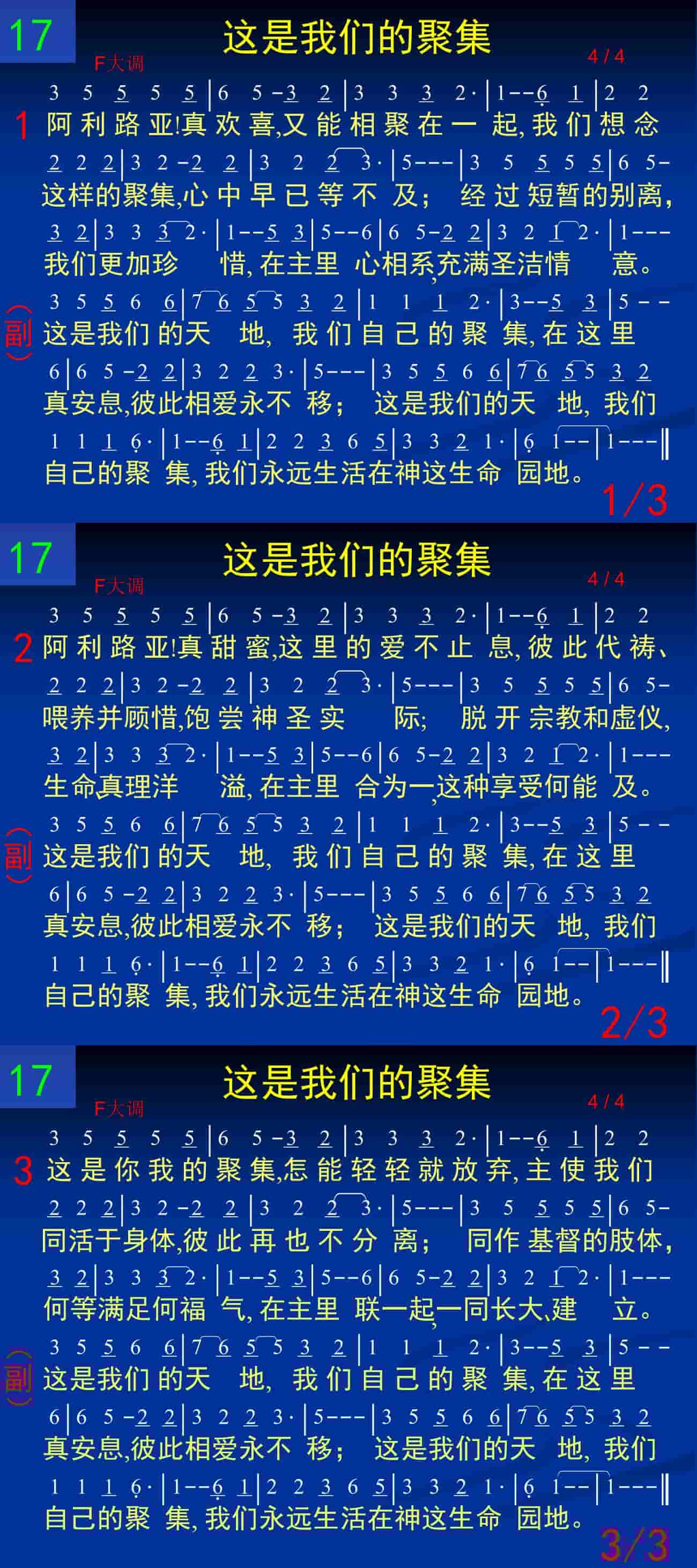 这是我们的天地,我们自己的聚集,在这里真安息,彼此相爱永不移;这是我们的天地,我们自己的聚集,我们永远生活在神这生命园地。