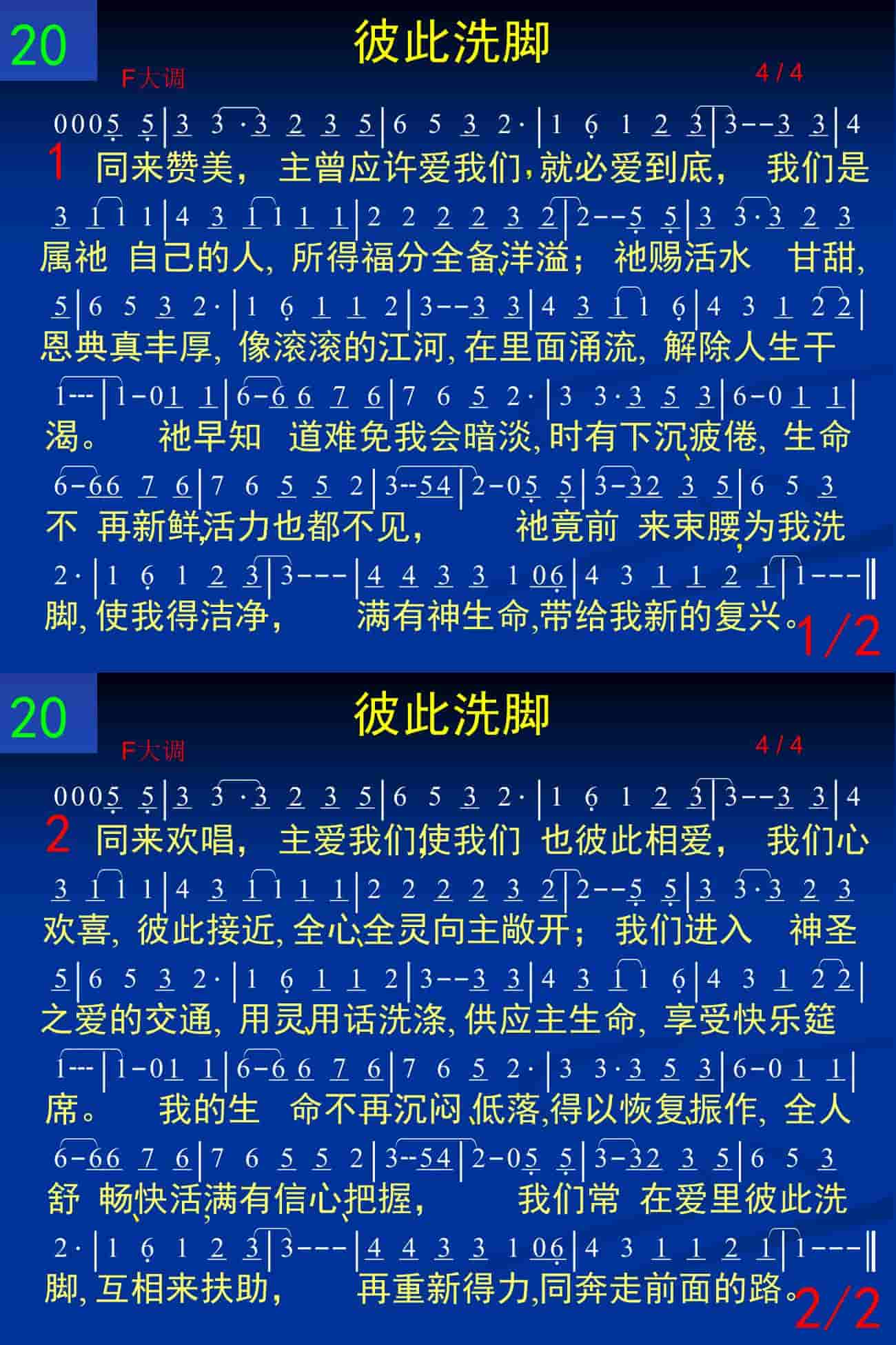 同来欢唱,主爱我们,使我们也彼此相爱,我们心欢喜,彼此接近,全心,全灵向主敞开;我们进入神圣之爱的交通,用灵,用话洗涤,供应主生命,享受快乐筵席。我的生命不再沉闷,低落,得以恢复,振作,全人舒畅,快活,满有信心,把握,我们常在爱里彼此洗脚,互相来扶助,再重新得力,同奔走前面的路。