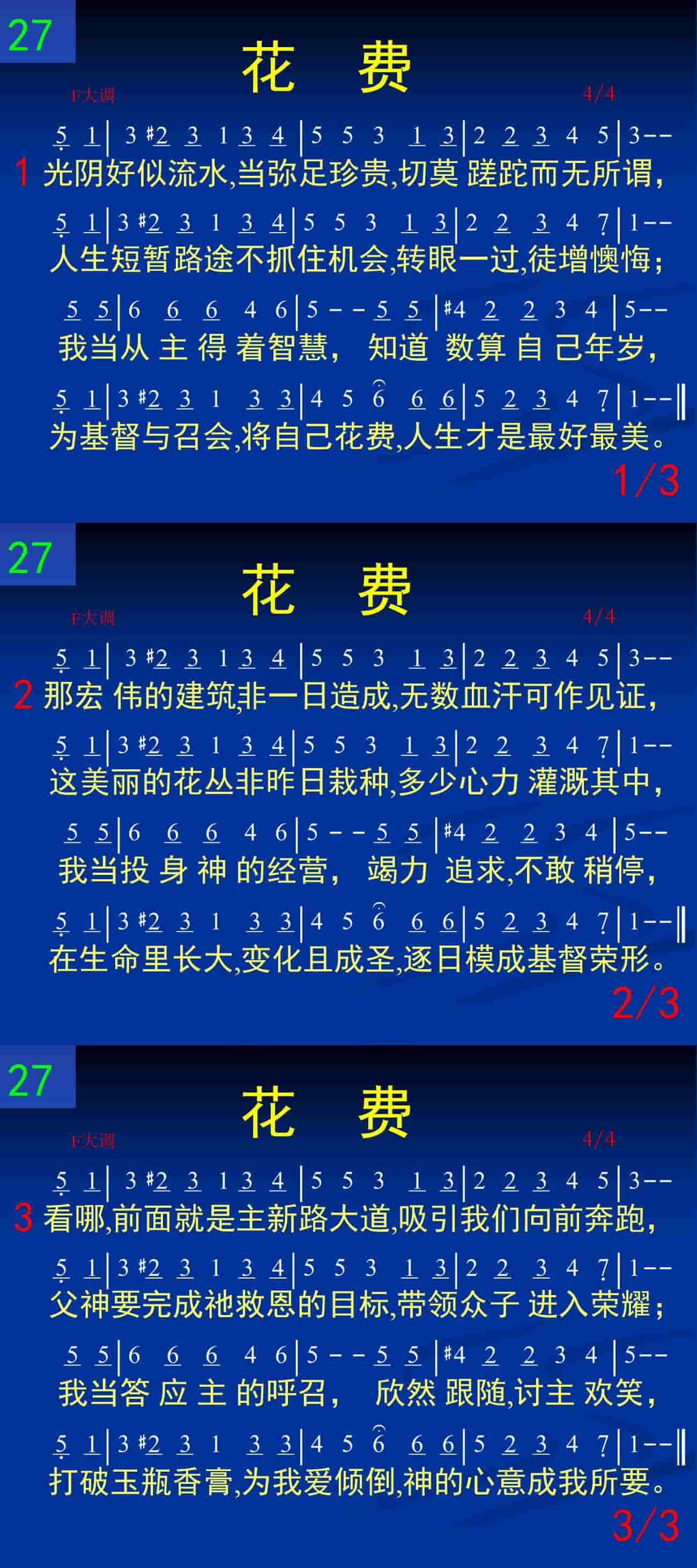 光阴好似流水,当弥足珍贵,切莫跎而无所谓,人生短暂路途不抓住机会,转眼一过,徒增懊悔;我当从主得着智慧,知道数算自己年岁,为基督与召会,将自己花费,人生才是最好最美。