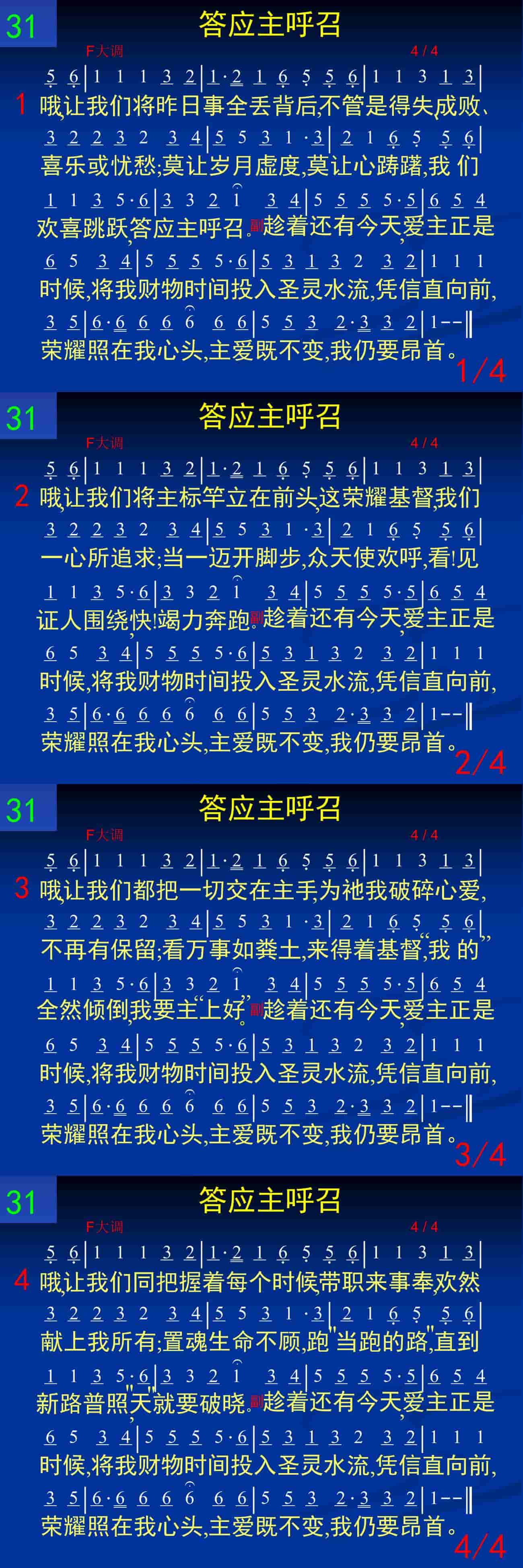 哦,让我们将昨日事全丢背后,不管是得失,成败,喜乐或忧愁;莫让岁月虚度,莫让心踌躇,我们欢喜跳跃,答应主呼召。