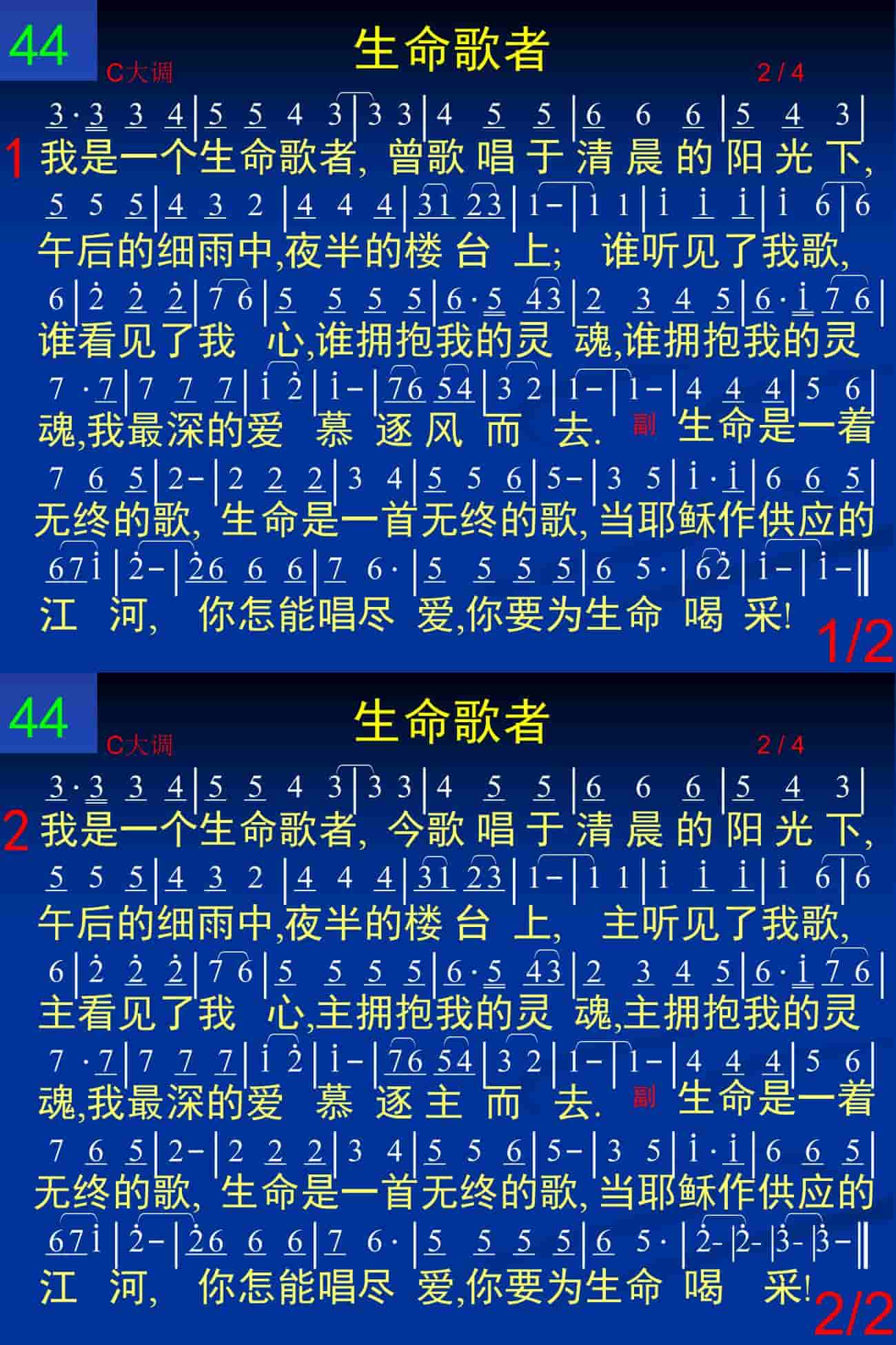 生命是一着无终的歌,生命是一首无终的歌,当耶稣作供应的江河,你怎能唱尽爱,你要为生命喝采!
