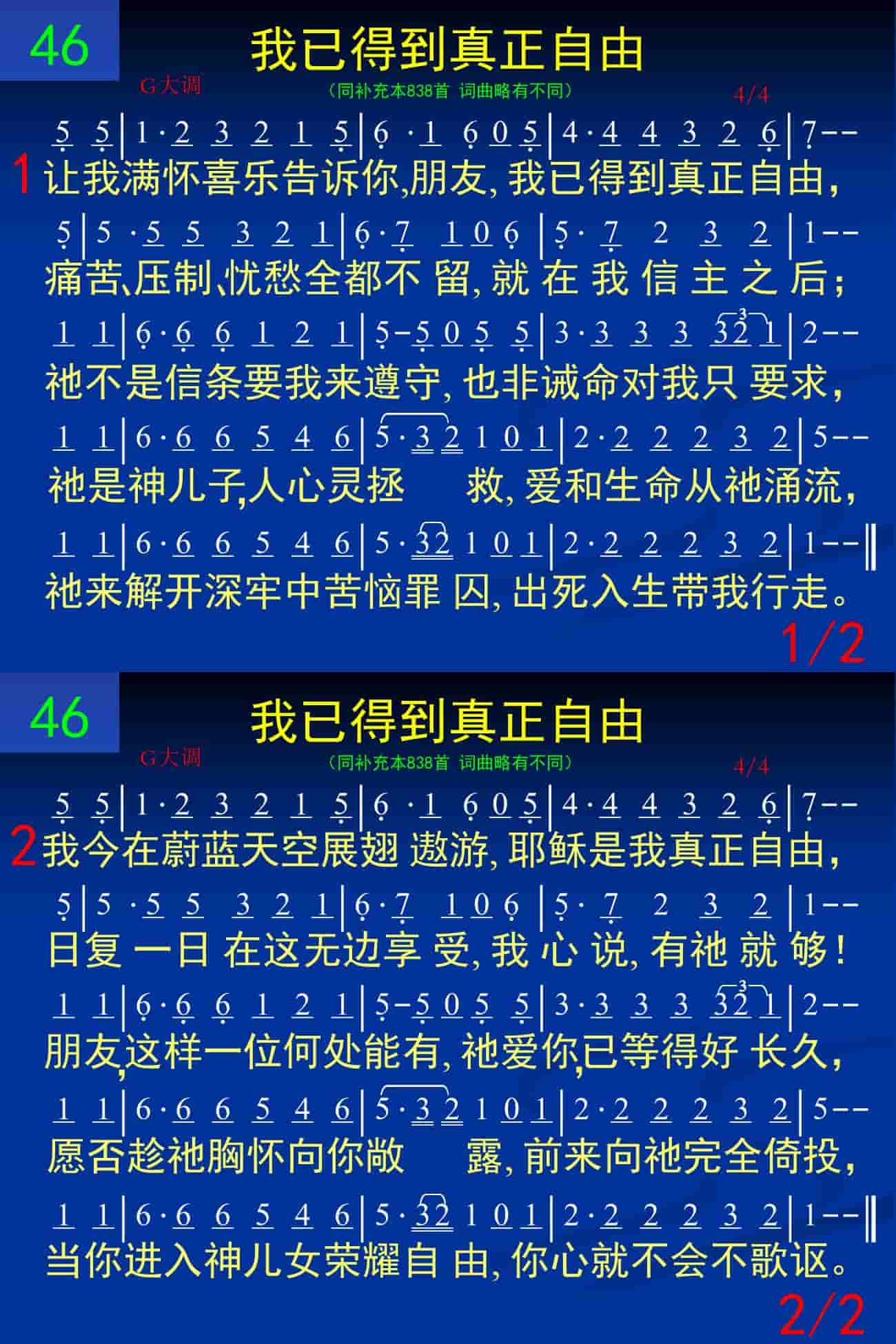 让我满怀喜乐告诉你,朋友,我已得到真正自由,痛苦,压制,忧愁全都不留,就在我信主之后;祂不是信条要我来遵守,也非诫命对我只要求,祂是神儿子,人心灵拯救,爱和生命众祂涌流,祂来解天深牢中苦恼罪囚,出死入生带我行走。