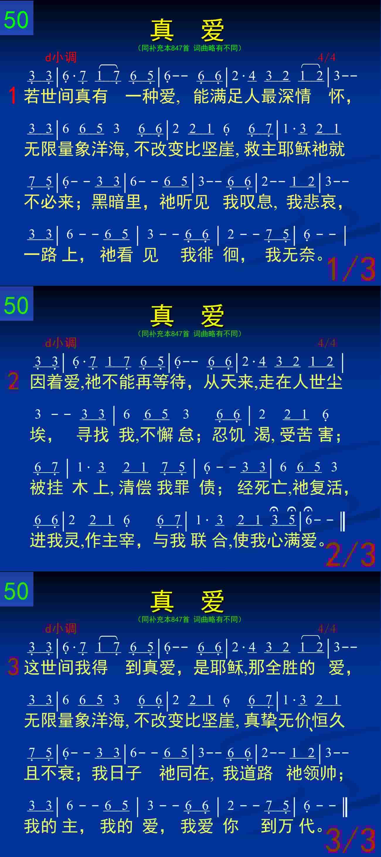 这世间我得到真爱,是耶稣,那全胜的爱,无限量像洋海,不改变比坚崖,真挚,无价,恒久且不衰;我日子祂同在,我道路祂领帅;我的主,我的爱,我爱你到万代。