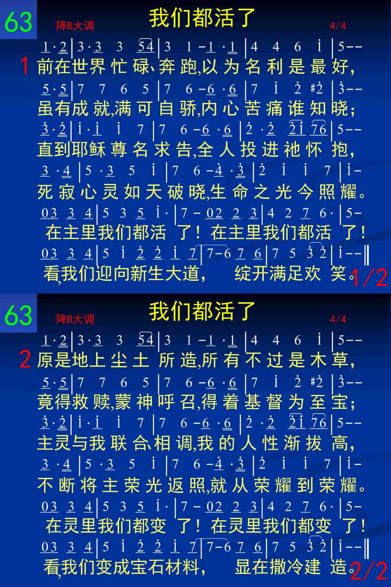 前在世界忙碌、奔跑,以为名利是最好,虽有成就,满可自骄,内心苦痛谁知晓;直到耶稣尊名求告,全人投进祂怀抱,死寂心灵如天破晓,生命之光今照耀。在主里我们都活了!在主里我们都活了!看,我们迎向新生大道,绽开满足欢笑。