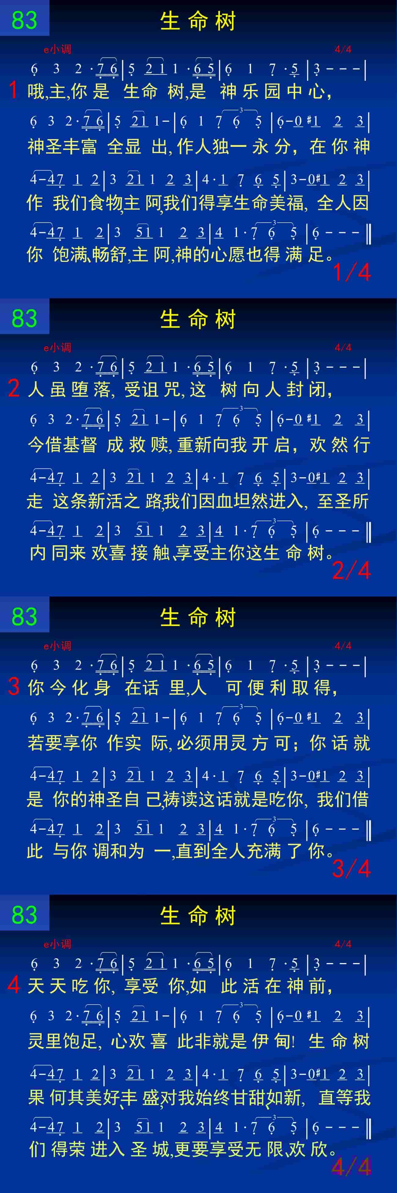 哦,主,你是生命树,是神乐园中心,神圣丰富全显出,作人独一永分,在你神作我们食物,主啊,我们得享生命美福,全人因你饱满、畅舒,主啊,神的心愿也得满足。