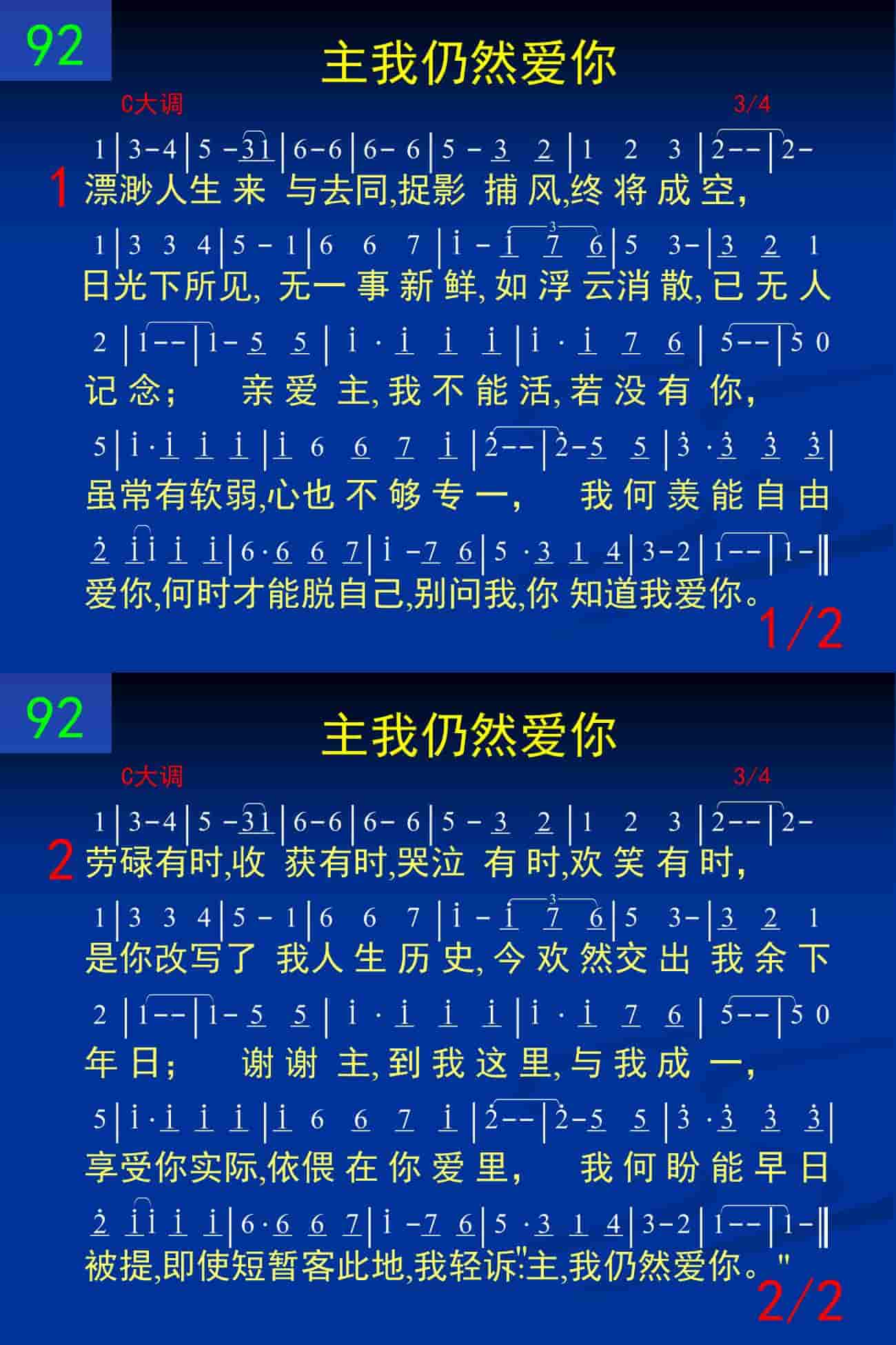 劳碌有时,收获有时,哭泣有时,欢笑有时,是你改写了我人生历史,今欢然交出我余下年日;谢谢主,到我这里,与我成一,享受你实际,依偎在你爱里,我何盼能早日被提,即使短暂客此地,我轻诉:“主,我仍然爱你。“
