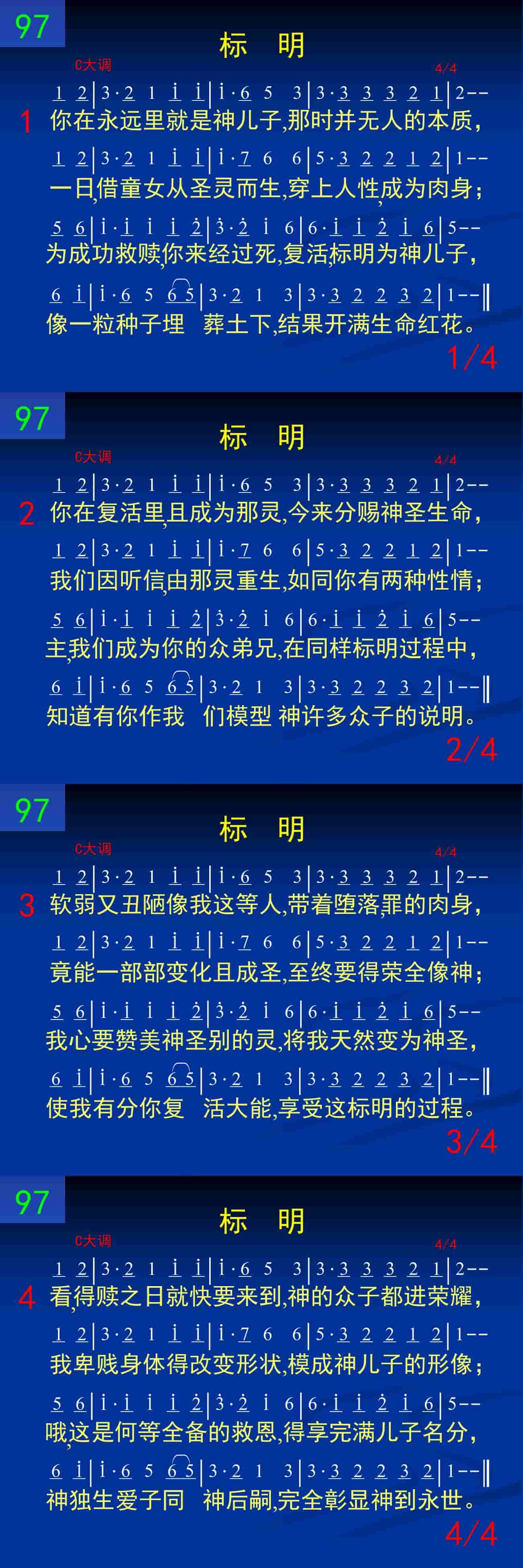 你在永远里就是神儿子,那时并无人的本质,一日,借童女从圣灵而生,穿上人性,成为肉身;为成功救赎,你来经过死,复活,标明为神儿子,像一粒种子埋葬土下,结果开满生命红花。