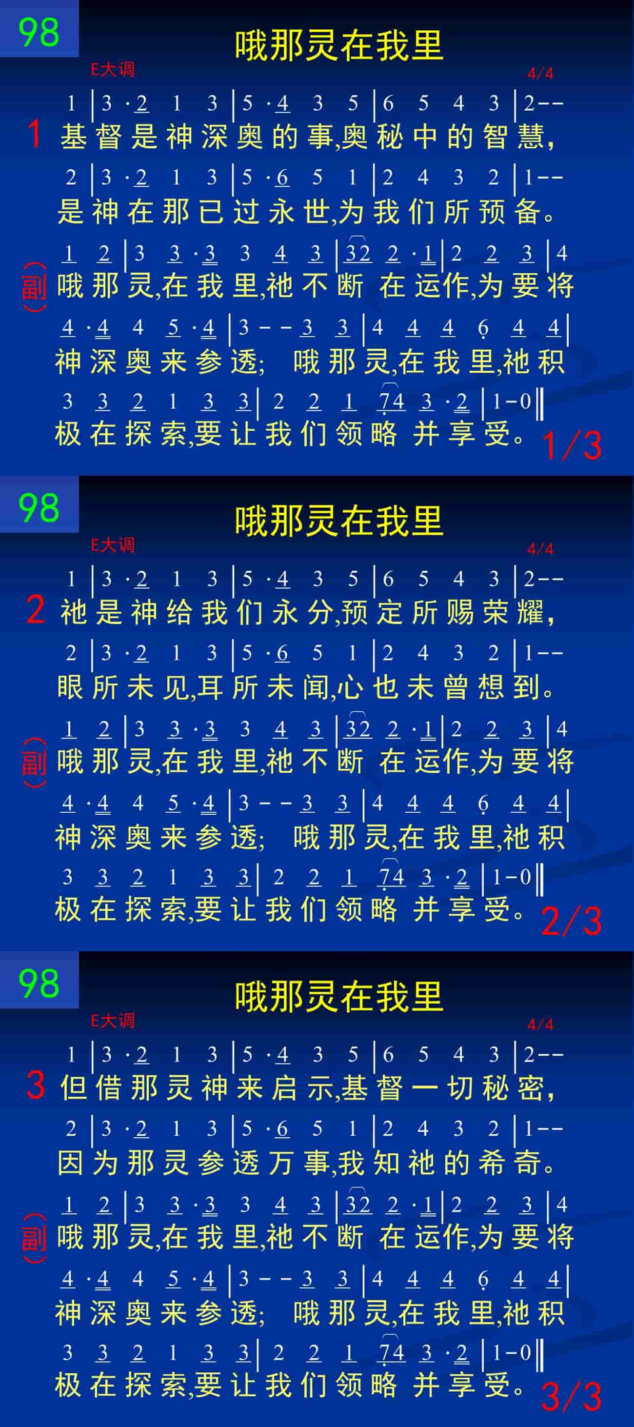 哦那灵,在我里,祂不断在运作,为要将神深奥来参透;哦那灵,在我里,祂积极在探索,要让我们领略并享受。